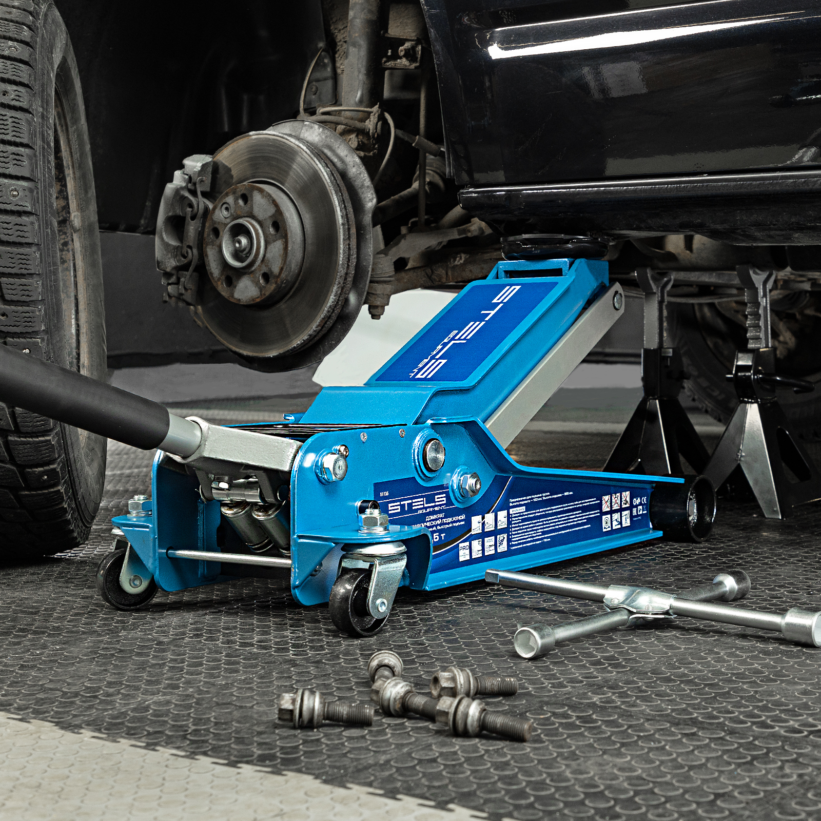 Домкрат гидравлический подкатной, быстрый подъем, 3.5т, Low Profile Quick, 100-565 мм, профессиональный Stels в Санкт-Петербурге
