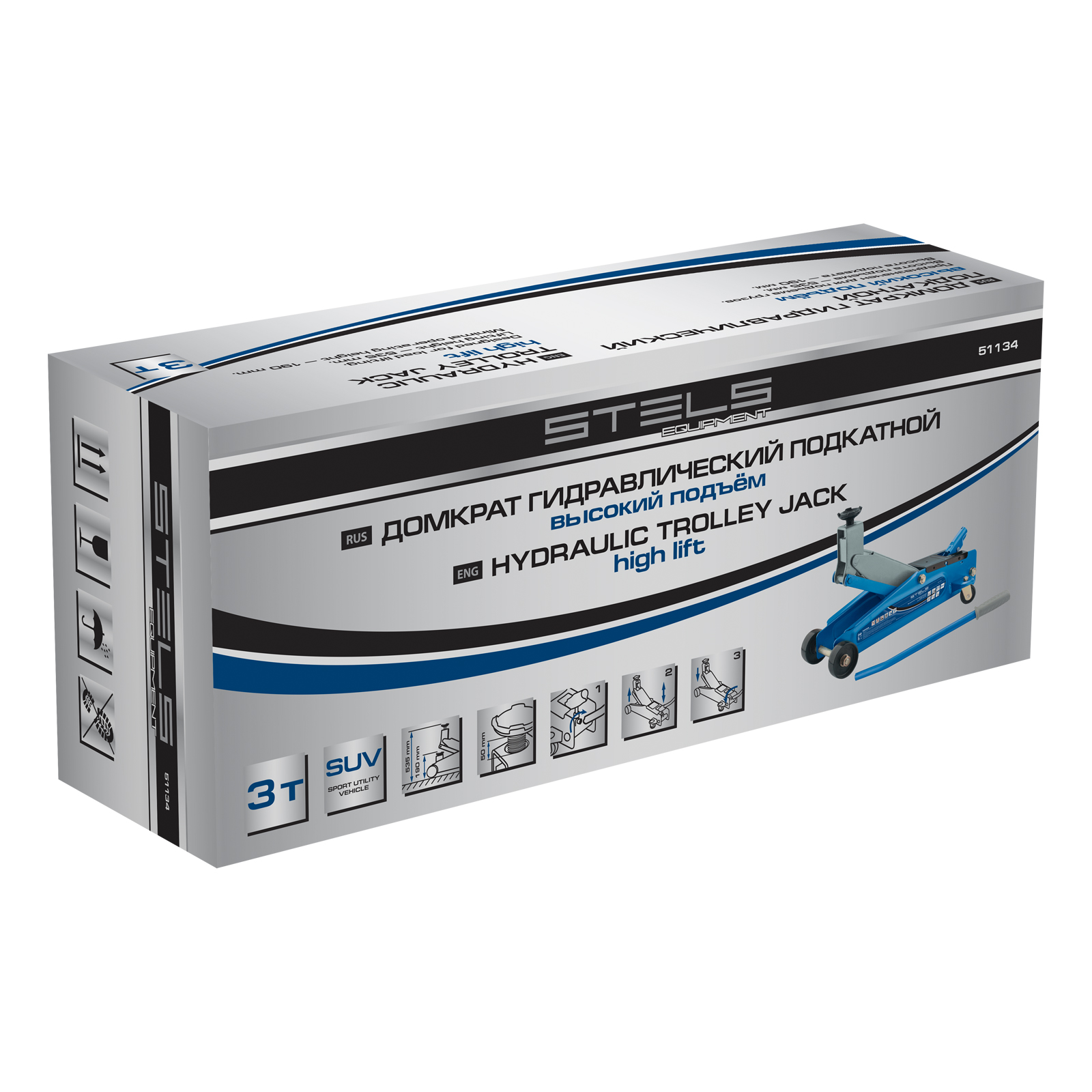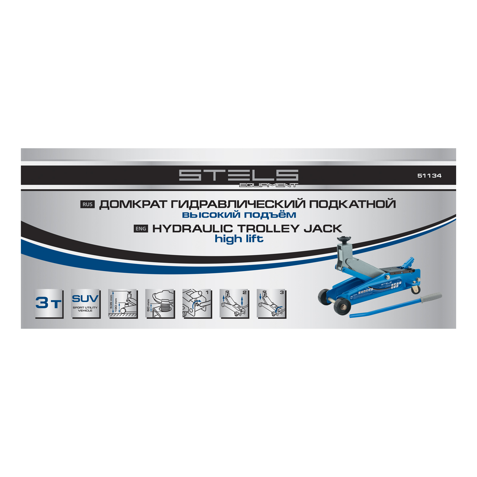 Домкрат гидравлический подкатной, высокий подъем, 3т, SUV, 190-535 мм Stels в Санкт-Петербурге