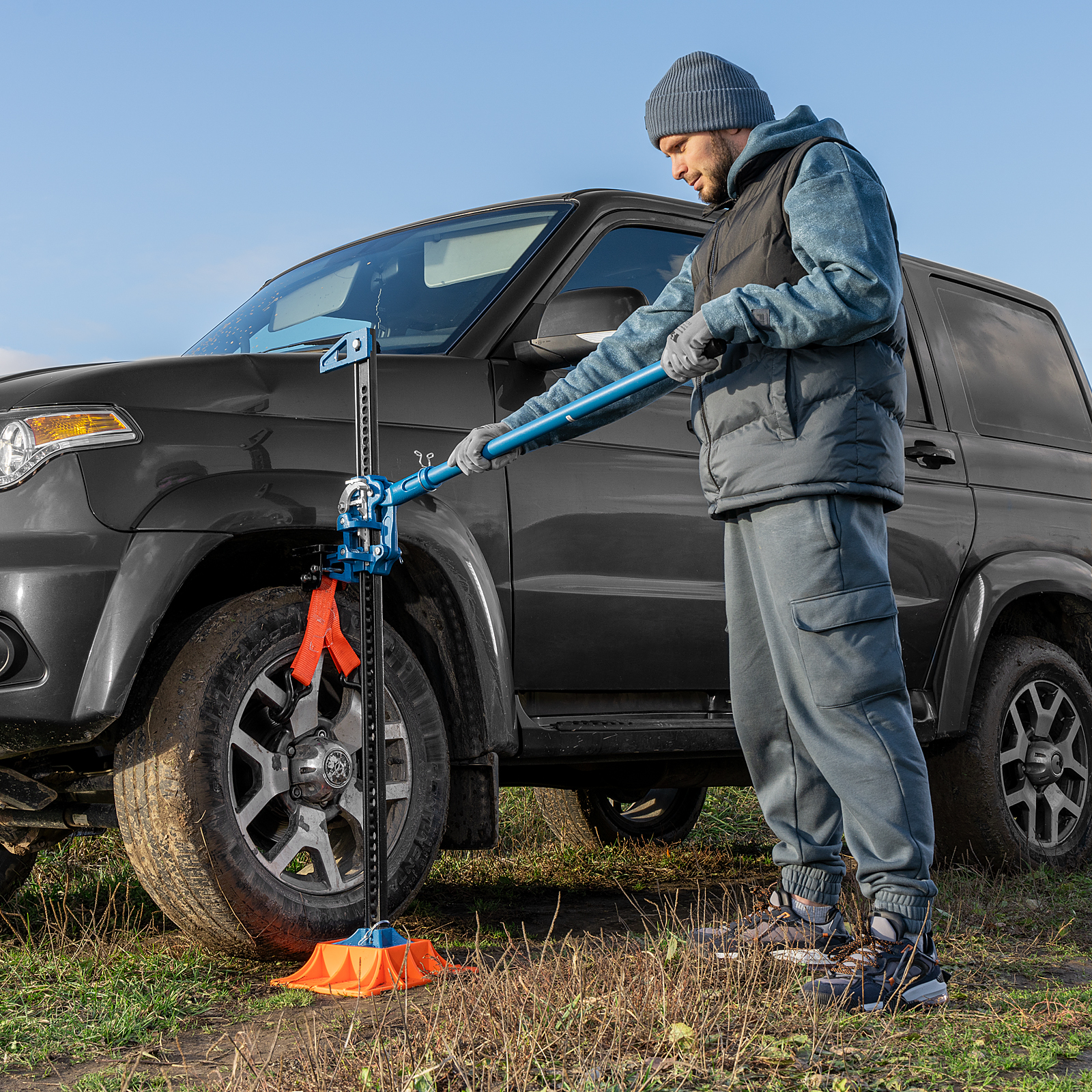 - Длительный срок службы — домкрат выполнен из стали, а порошковое покрытие защищает его от коррозии.