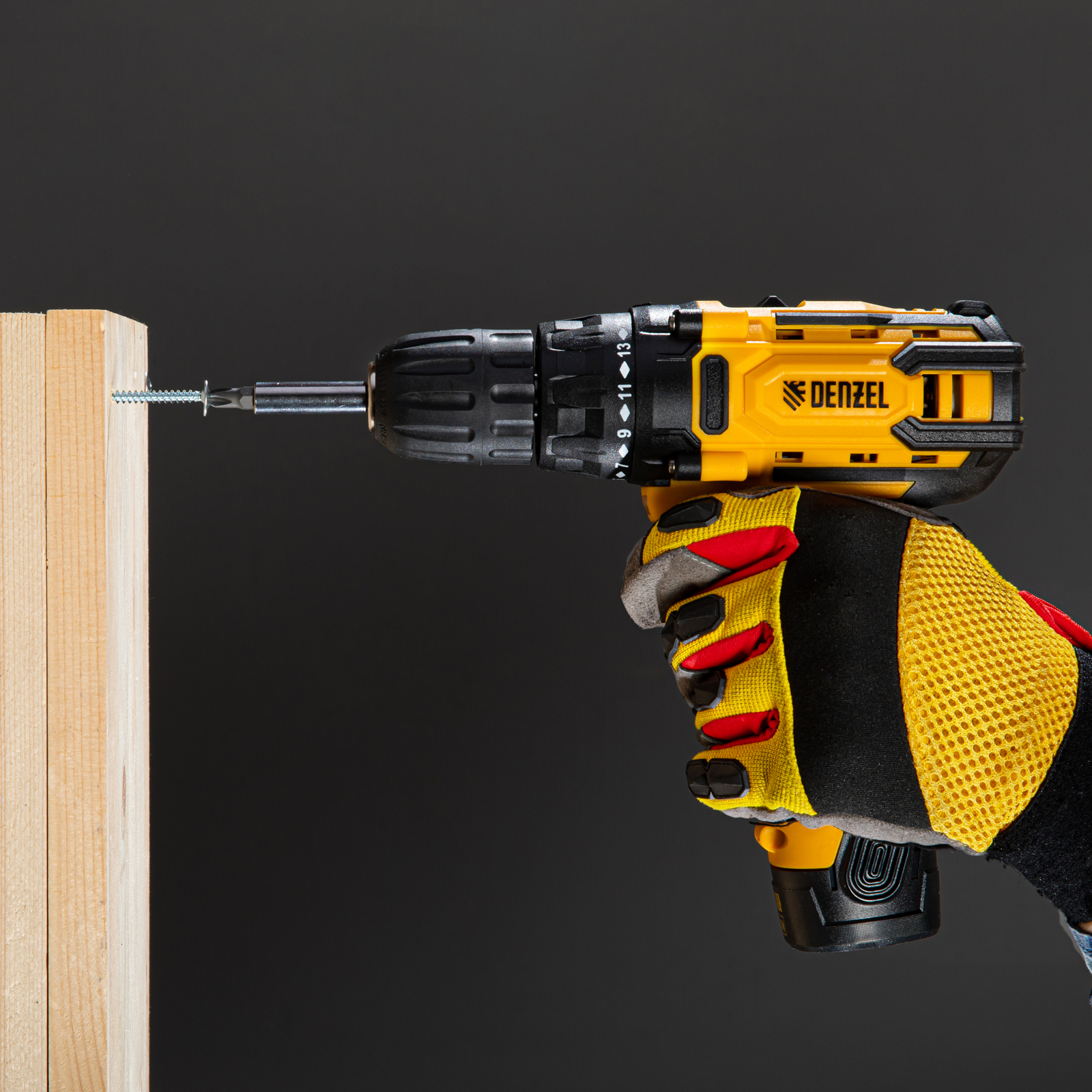 Аккумуляторная дрель-шуруповерт Denzel CDL-12CB 26102 с батареей Li-Ion 12 В предназначена для монтажа и демонтажа резьбовых соединений, сверления отверстий в металле (до 10 мм), древесине (до 16 мм), пластмассе и других материалах. Инструмент пригодится профессионалам и любителям на строительной площадке, дома или на даче.,Надежный литий-ионный аккумулятор без эффекта памяти обеспечивает долгий срок службы инструмента. Дрель не зависит от сети питания, что делает удобной работу на строительных объектах, на высоте и в отдаленных участках дома.