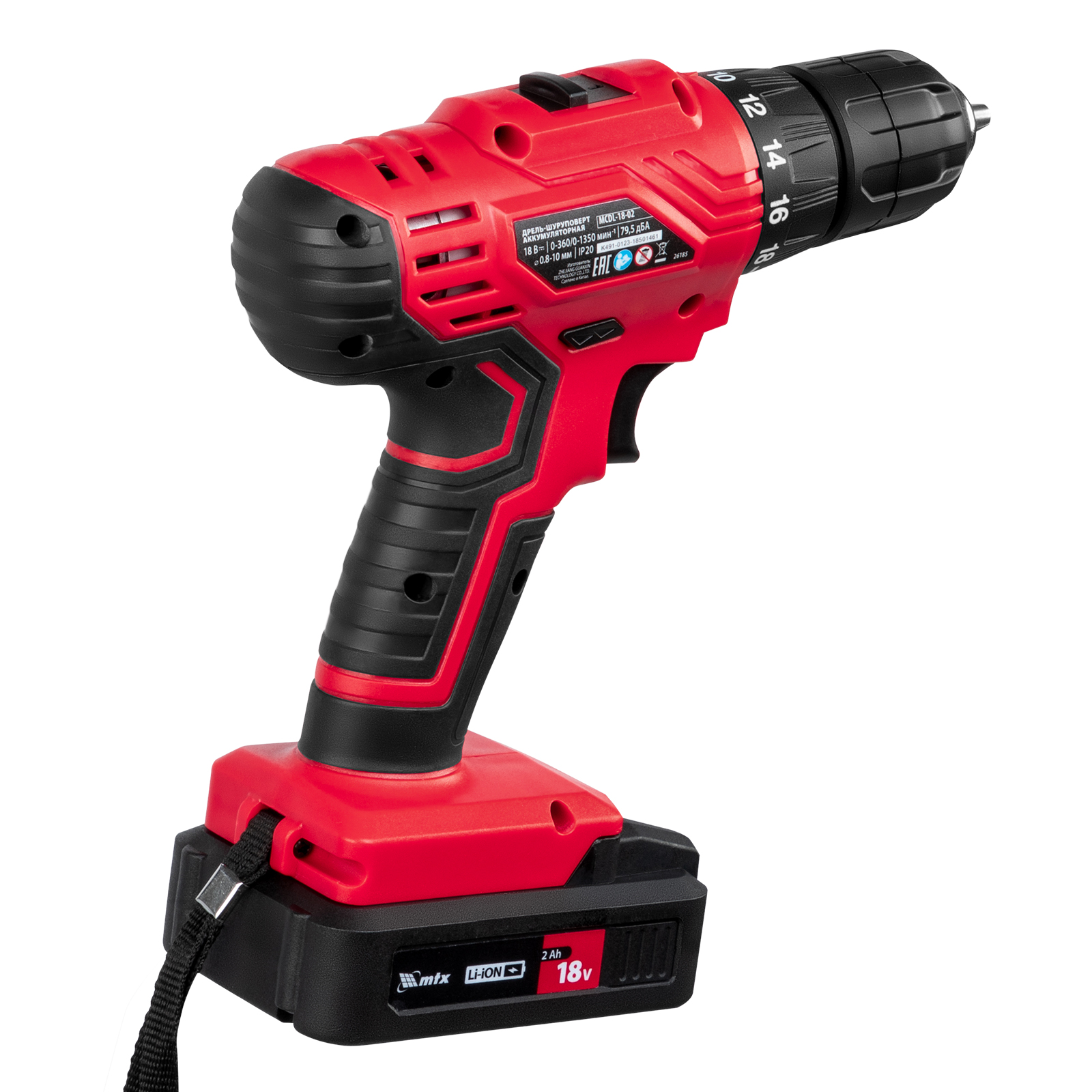 Дрель-шуруповерт аккумуляторная MCDL-18-02, Li-Ion, 18 В, 2 акк. MTX в Санкт-Петербурге