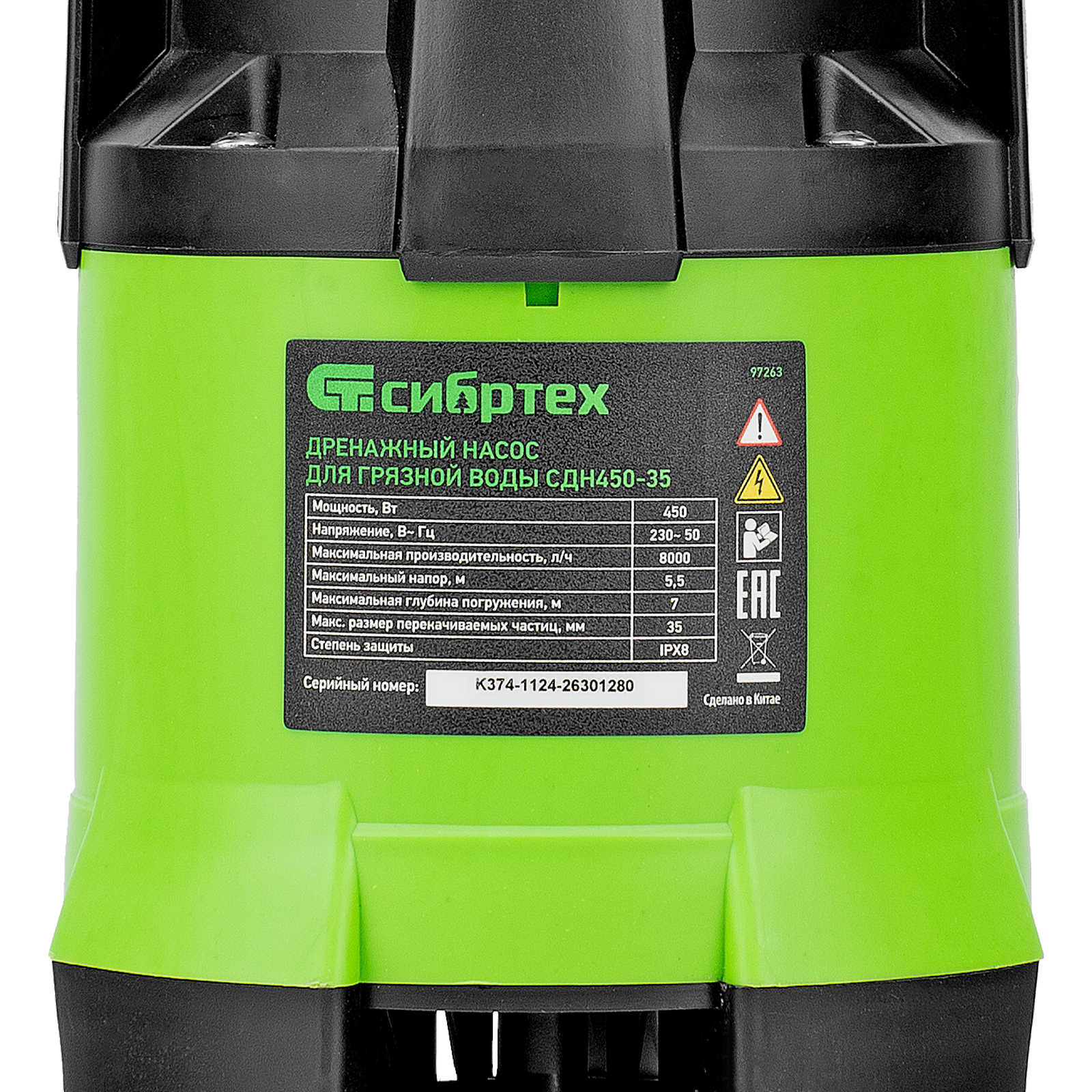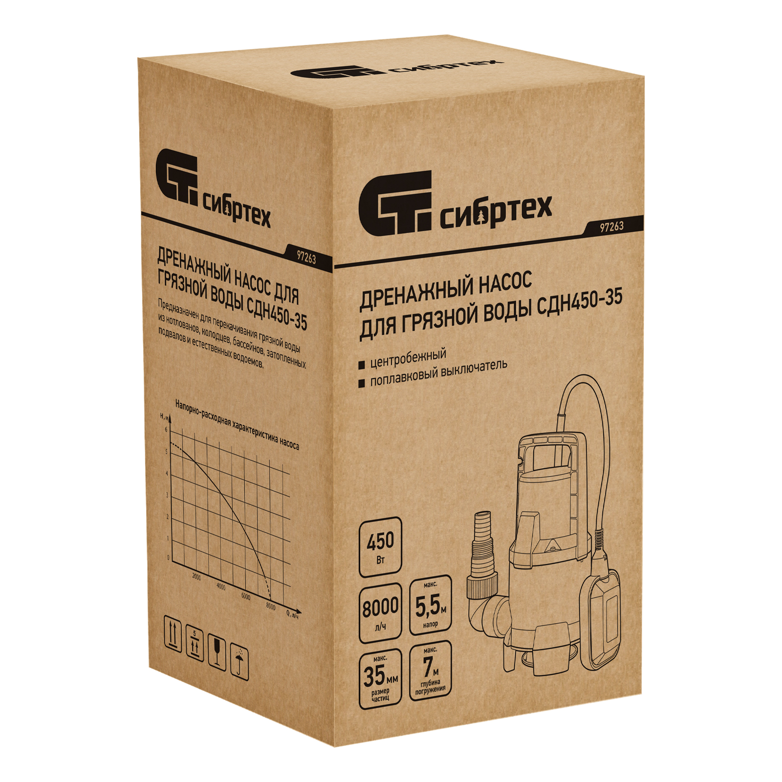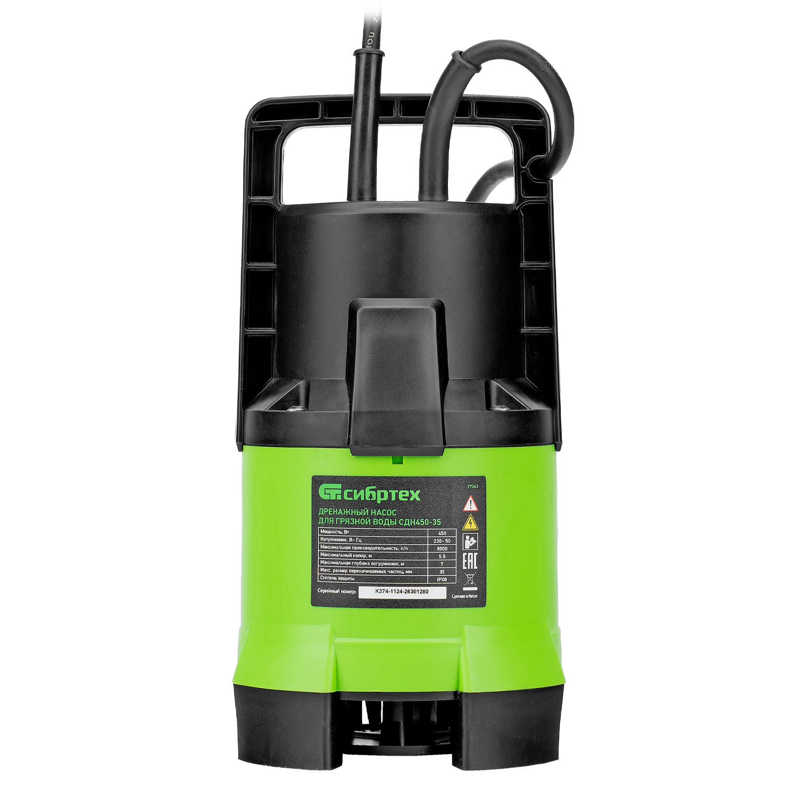 Дренажный насос для грязной воды СДН450-35, 450 Вт, напор 5.5 м, 8000 л/ч Сибртех в Санкт-Петербурге