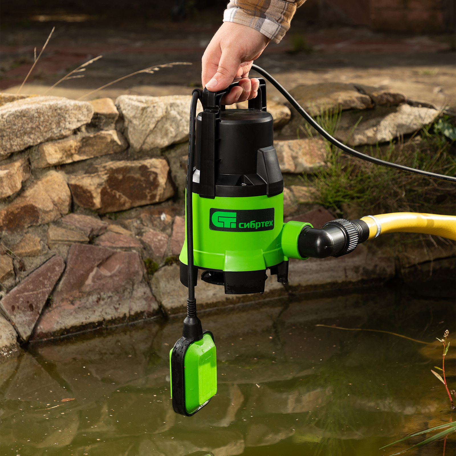 - Автономная работа — благодаря поплавковому механизму насос автоматически отключается и включается при достижении определенных уровней воды.