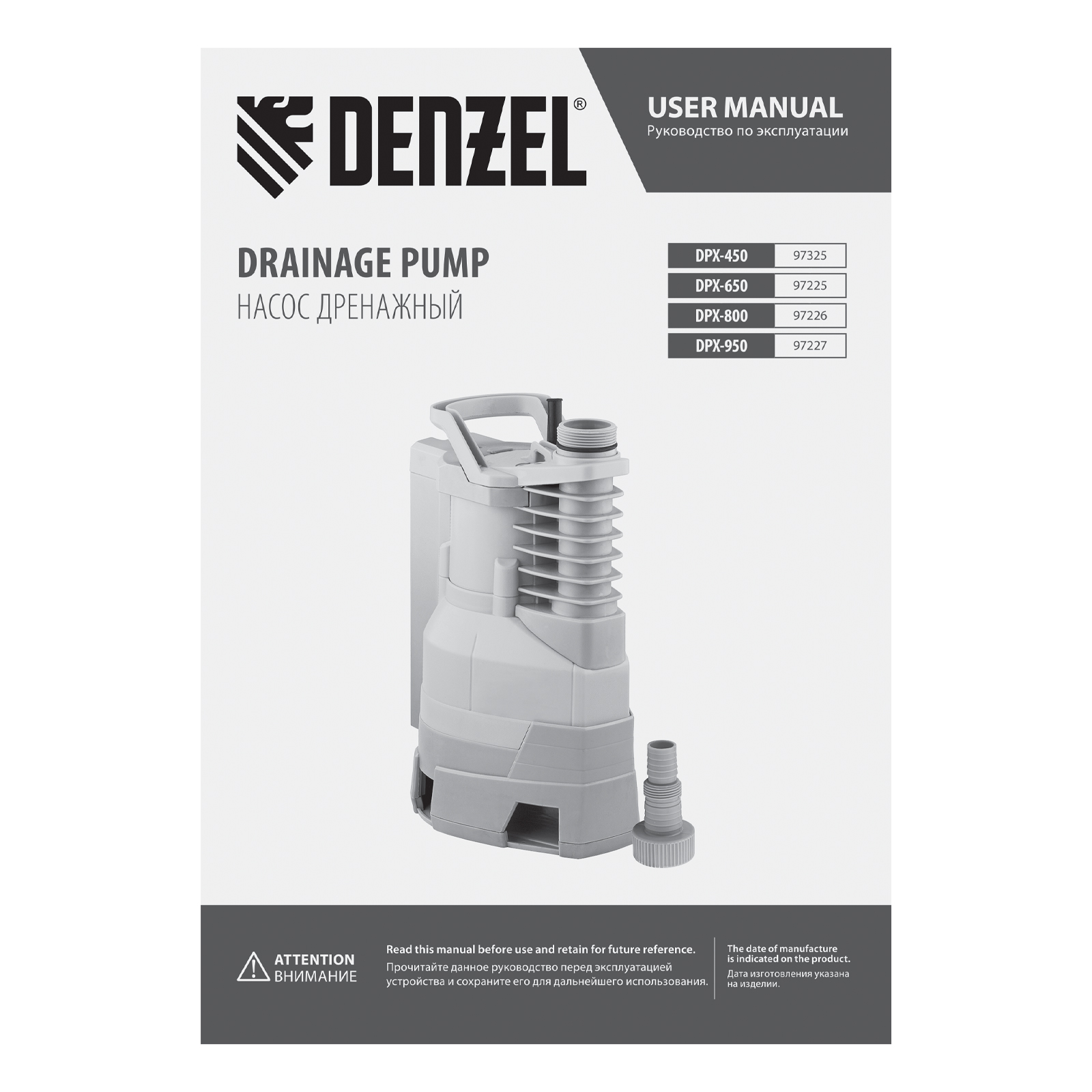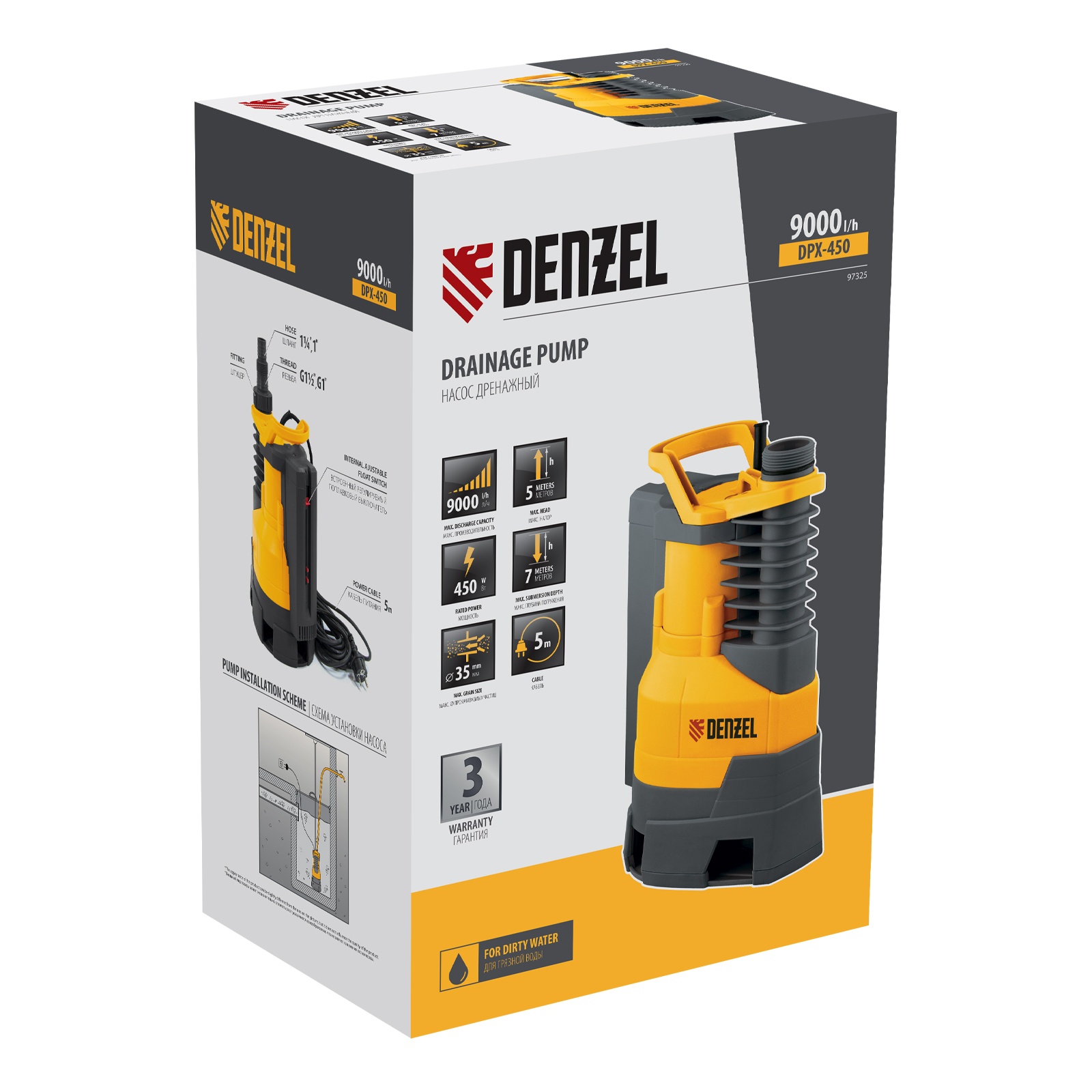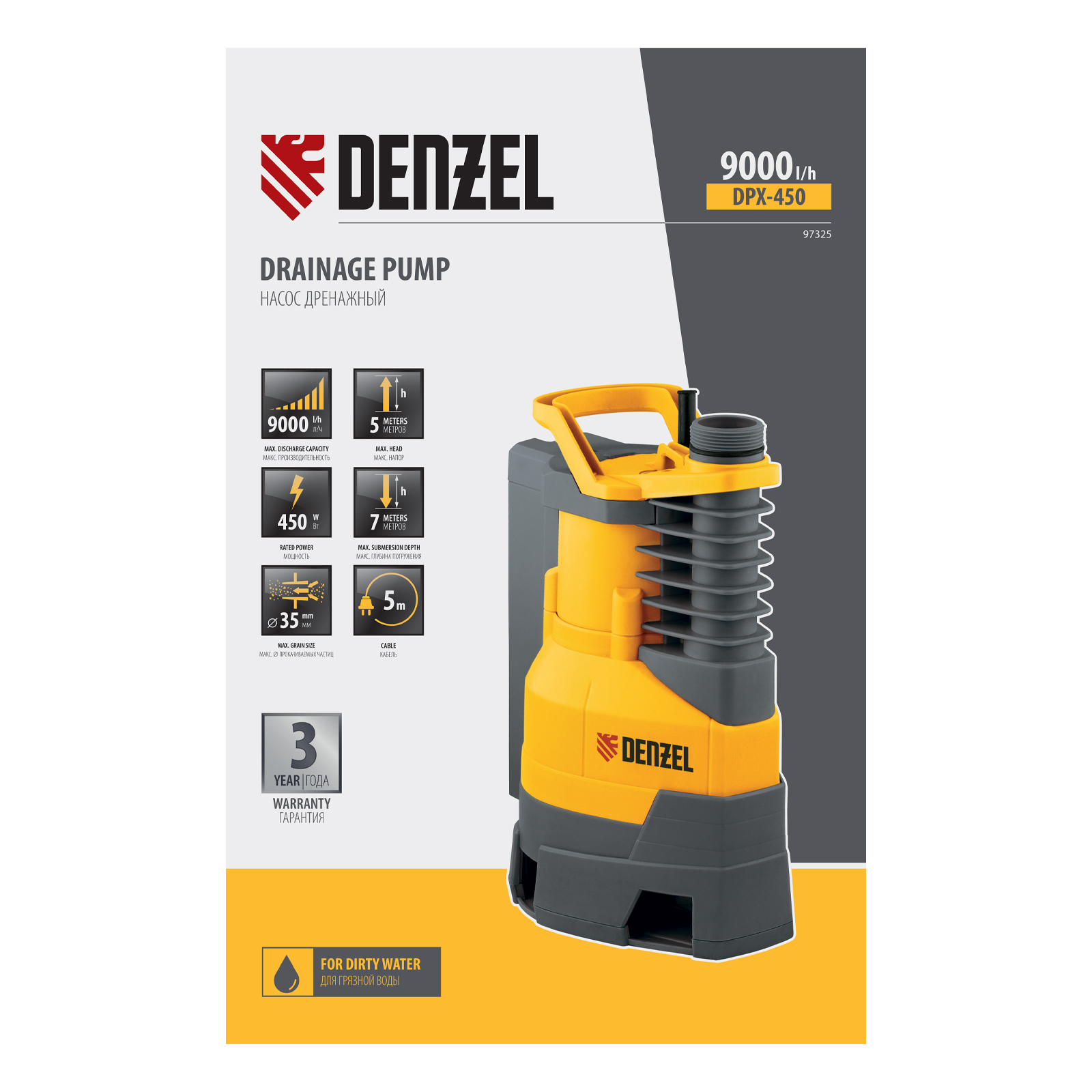 Дренажный насос DPХ450, 450 Вт, подъем 5 м, 9000 л/ч Denzel в Санкт-Петербурге