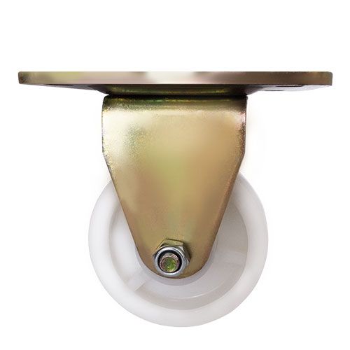 Данное большегрузное нейлоновое колесо предназначено для установки на передвижное оборудование, используемое в пищевой, химической и фармацевтической промышленности. Оно не боится воздействия влаги и различных химически агрессивных веществ, отличается низким коэффициентом трения и высокой износостойкостью. Шариковый подшипник в оси обеспечивает плавное вращение. Неповоротный кронштейн изготовлен из оцинкованной стали, тип крепления — платформа с отверстиями под болты. Максимальная грузоподъемность модели — 550 кг.