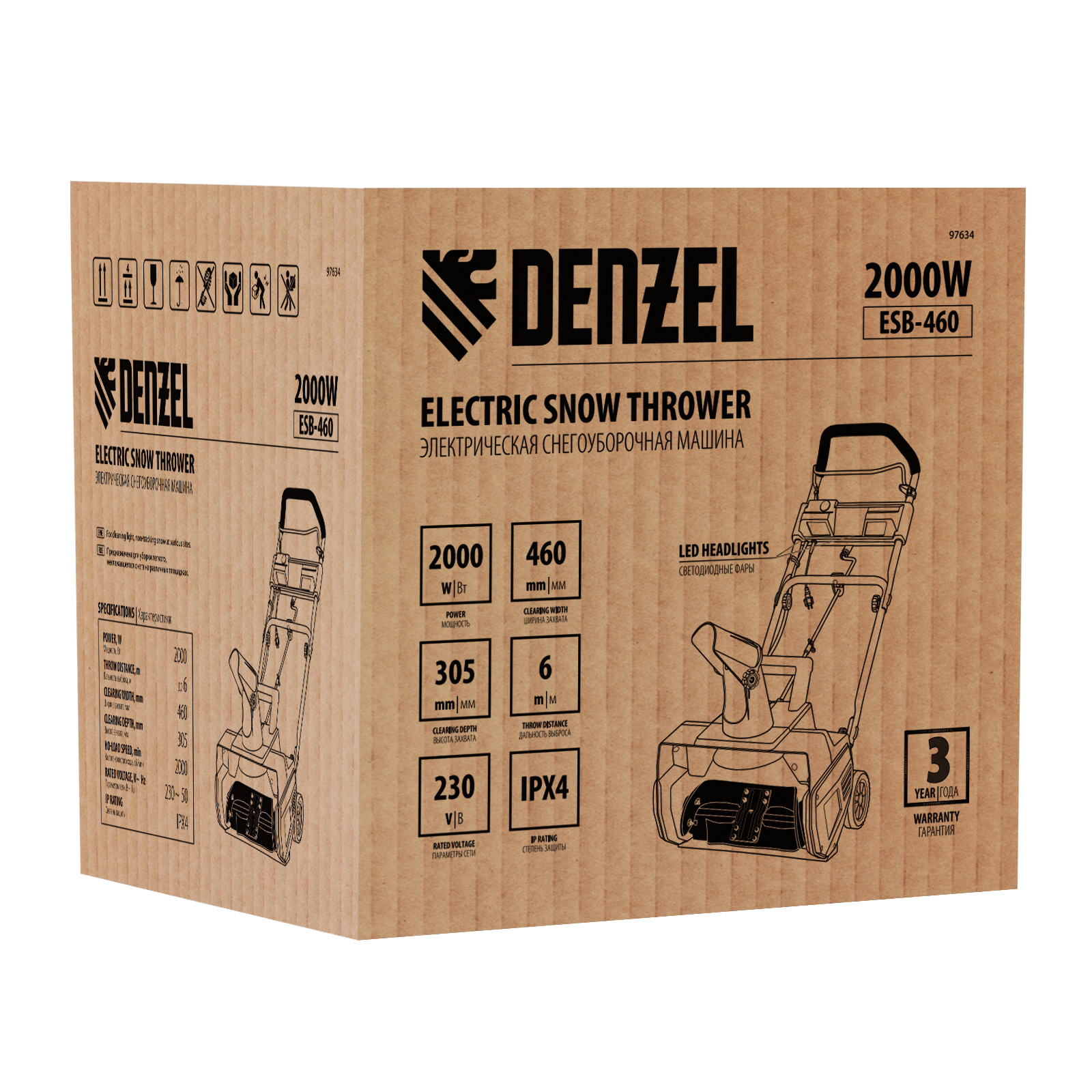Электрическая снегоуборочная машина ESB-460, 2 кВт Denzel