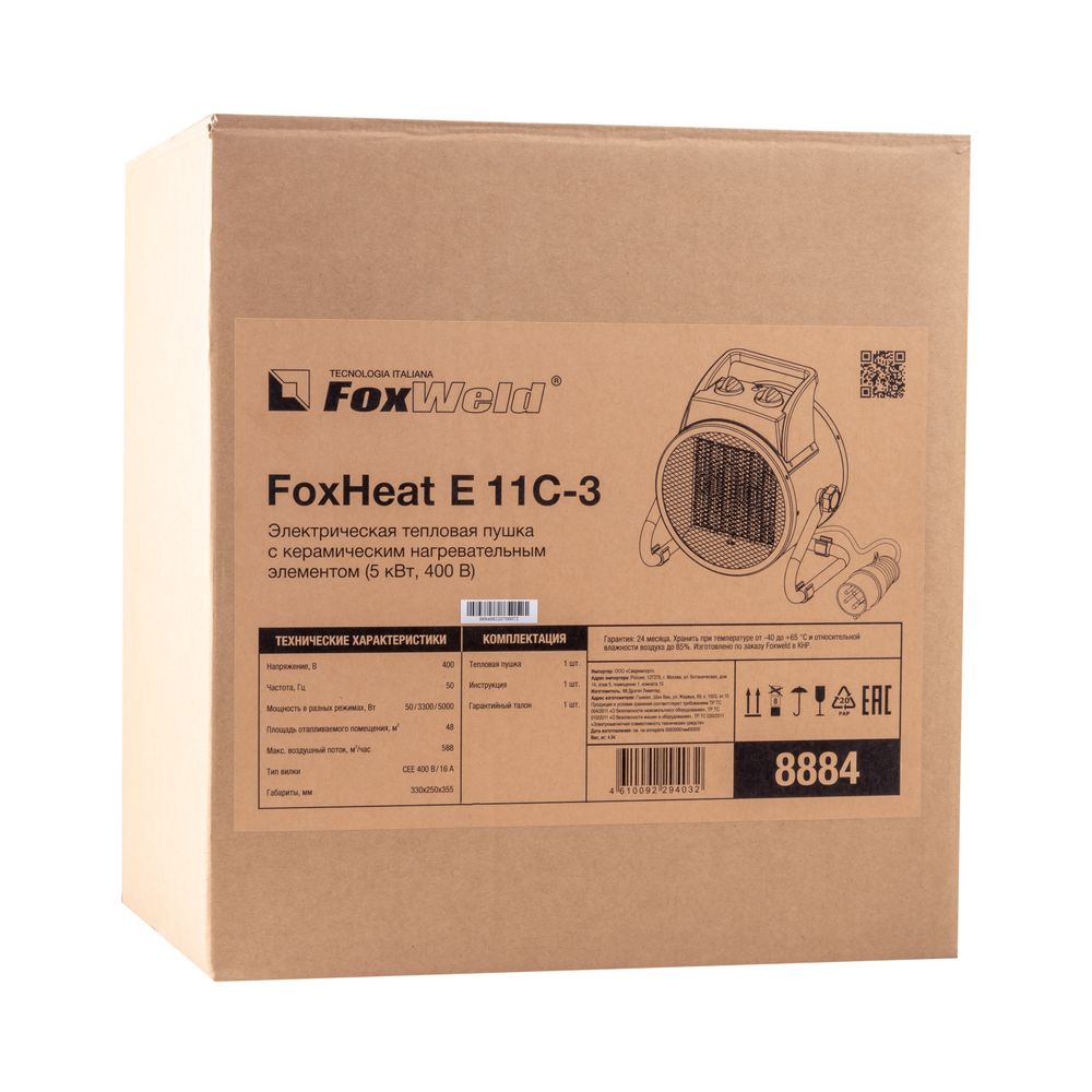 Электрическая тепловая пушка FoxHeat E 11C-3 с керамическим нагревательным элементом (5 кВт 3ф) в Санкт-Петербурге