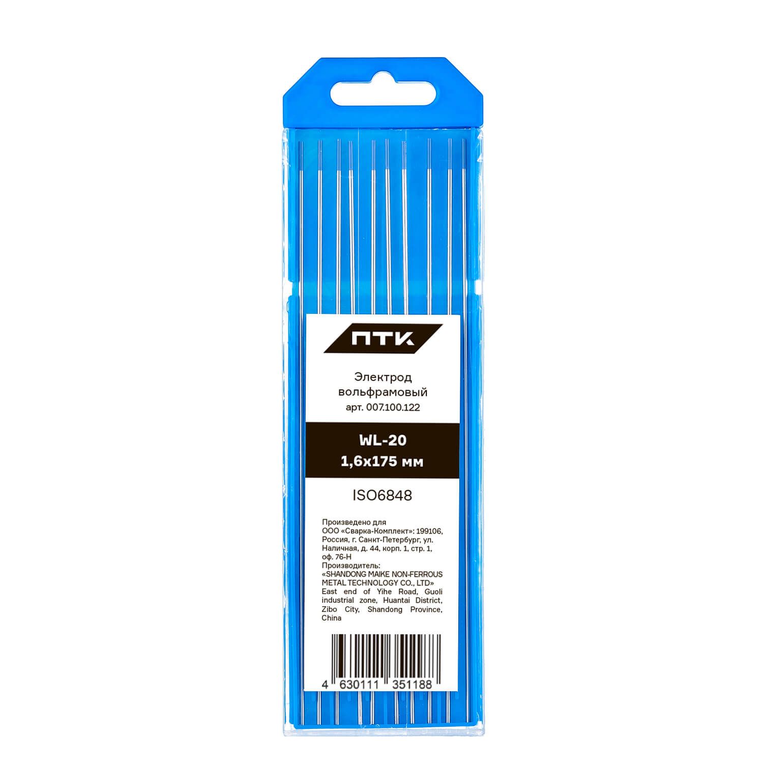 Диаметр электрода 1,6 мм, длина электрода 175 мм. Вольфрам имеет синий цветовой код. Поставляется в пластиковом пенале по 10 штук. В карточке с товаром указана цена за 1 вольфрамовый электрод.