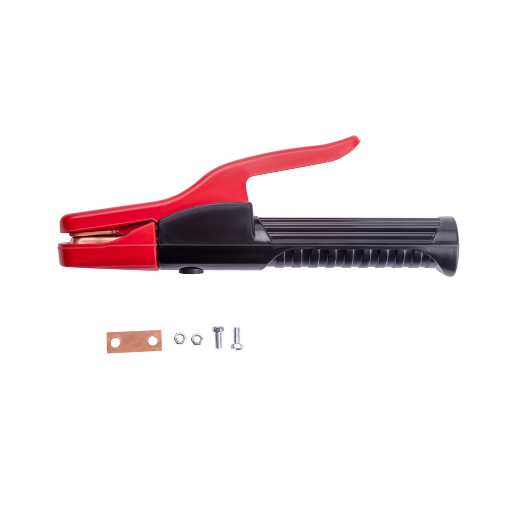 Электрододержатель Kvazarrus EH-500A (основа зубчатых держателей прочный токопроводящий сплав) сделан из износостойких, термически стойких и прочных материалов. Область обхвата держателя ладонью сварщика имеет надёжную электроизоляцию. Покрытый электрод, имеющий основное, рутиловое или целлюлозное покрытие, надёжно фиксируется при помощи мощного пружинного механизма. Механизм держателя позволяет зафиксировать сварочный электрод под углами 45°, 90°, 135°, 180°. К электрододержателю подсоединяют медный сварочной провод сечением 50 мм, алюминиевый омеднённый кабель (CCA) диаметром 70 мм. Сила фиксации электрода составляет до 25 кг/см².ЭРГОНОМИЧНОСТЬ: Эргономичная противоскользящая рукоятка хорошо лежит в руке. Термостойкий пластик обеспечивает безопасность во время рабочего процесса.ПРЕИМУЩЕСТВА:Простая, удобная и надёжная конструкцияМощный зажимной механизмНадёжная фиксация сварочного кабеляВозможность фиксации электрода в разных пространственных положениях