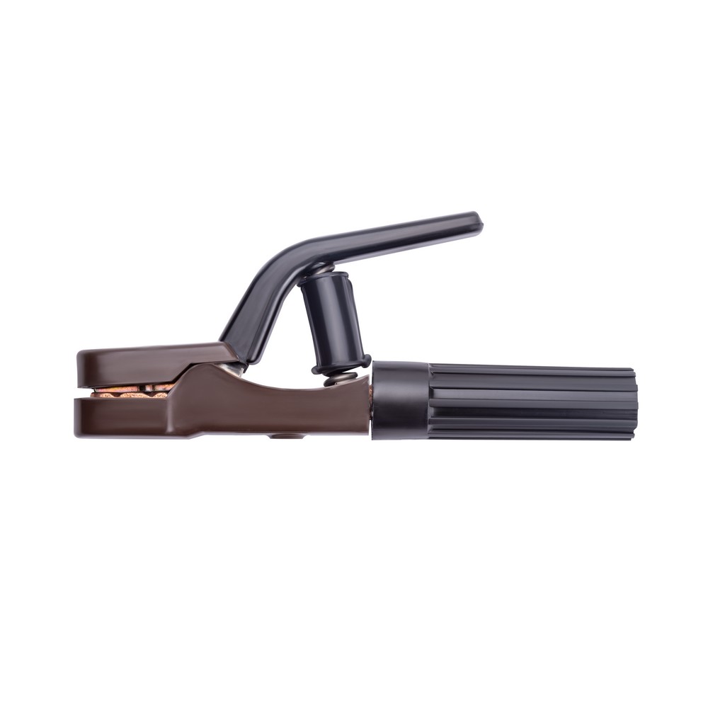 Электрододержатель Varteg EH-500A (основа зубчатых держателей сталь, покрытая медным токопроводящим сплавом) сделан из износостойких, термически стойких и прочных материалов. Область обхвата держателя ладонью сварщика имеет надёжную электроизоляцию. Покрытый электрод, имеющий основное, рутиловое или целлюлозное покрытие, надёжно фиксируется при помощи мощного пружинного механизма. Механизм держателя позволяет зафиксировать сварочный электрод под углами 45°, 90°, 135°, 180°. К электрододержателю подсоединяют медный сварочной провод сечением 60 мм, алюминиевый омеднённый кабель (CCA) диаметром 95 мм. Сила фиксации электрода составляет до 25 кг/см².ПРЕИМУЩЕСТВА:Простая, удобная и надёжная конструкцияМощный зажимной механизмНадёжная фиксация сварочного кабеляВозможность фиксации электрода в разных пространственных положениях