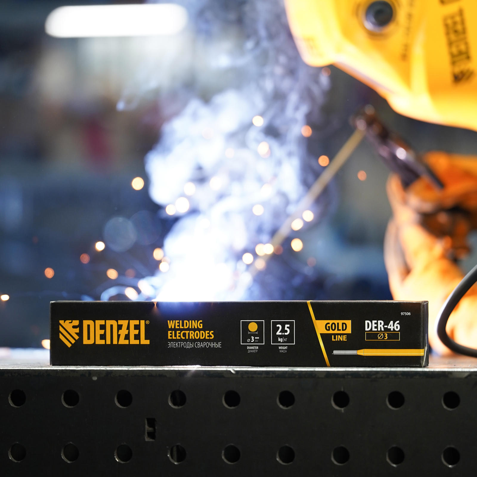 Электроды DER-46 Goldline, диам. 3 мм, 2,5 кг, рутил-целлюлозное покрытие Denzel