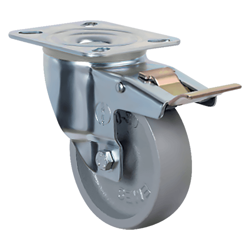Колесо EMES EM01 VKV 100 F устанавливается на передвижное оборудование, которое используется при высоких температурных режимах. Устойчиво к осевым и радиальным нагрузкам, имеет высокую несущую способность. Изготовлено из высокопрочного чугуна, поворотный кронштейн с тормозом — из оцинкованной стали. Не рекомендуется к использованию на полах из хрупких материалов.