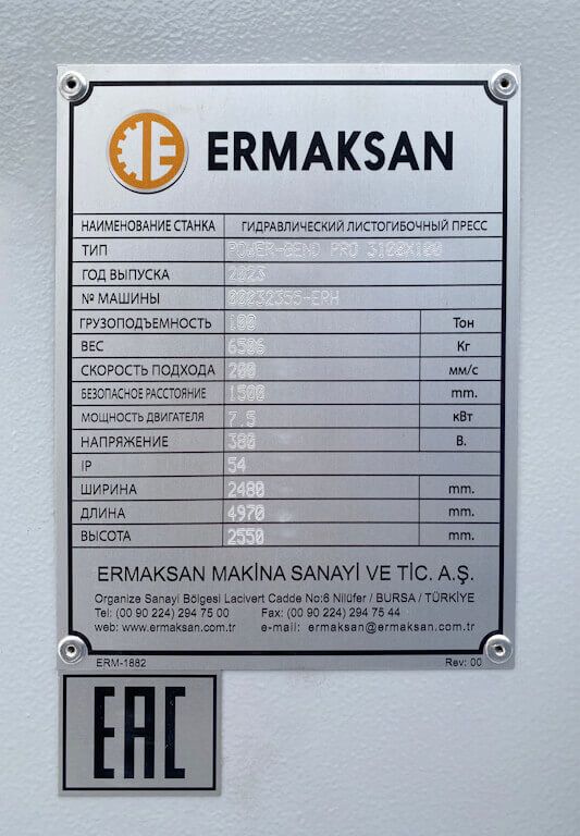 Ermaksan Power Bend PRO 2600 x 100