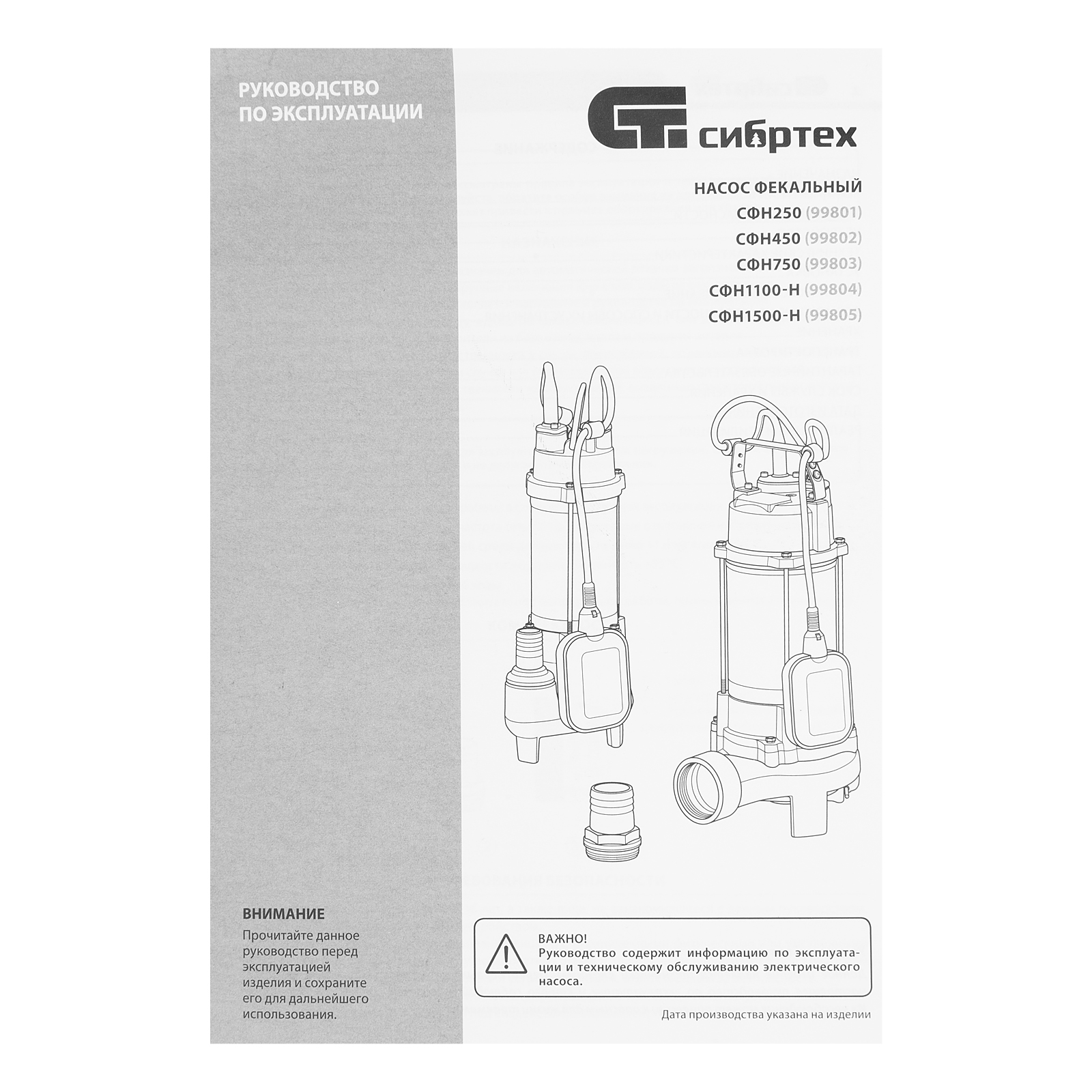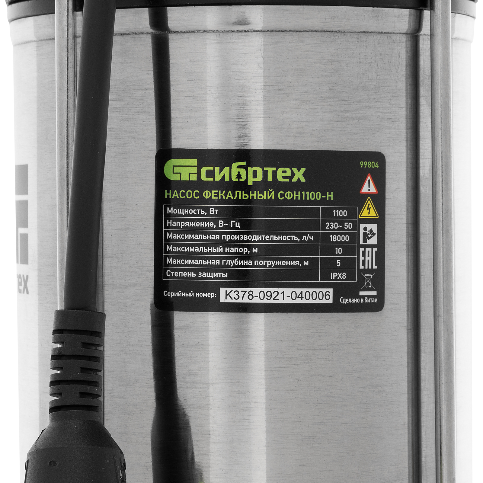 Фекальный насос СФН1100-Н, 1100 Вт, напор 10 м, 18000 л/ч, нож Сибртех в Санкт-Петербурге