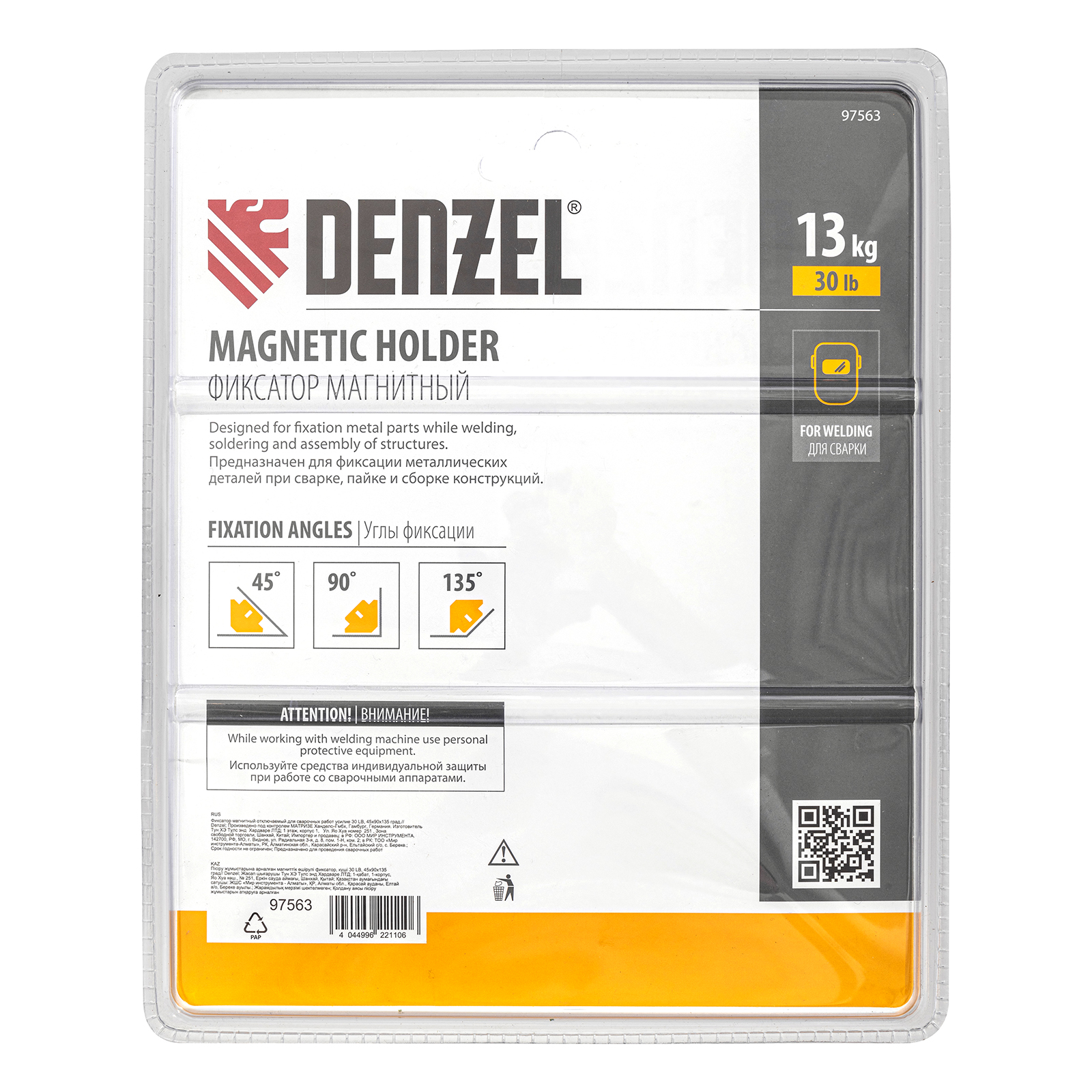 Фиксатор магнитный отключаемый для сварочных работ Denzel 97563 выдерживает усилие 30 LB (14 кг) и способен удерживать металлические предметы под углом 45°, 90°, 135°. Применяется при пайке, сварке, монтаже уголков, труб, профилей и других конструкций. Магнитное поле при необходимости отключается, что упрощает установку фиксатора и его снятие.