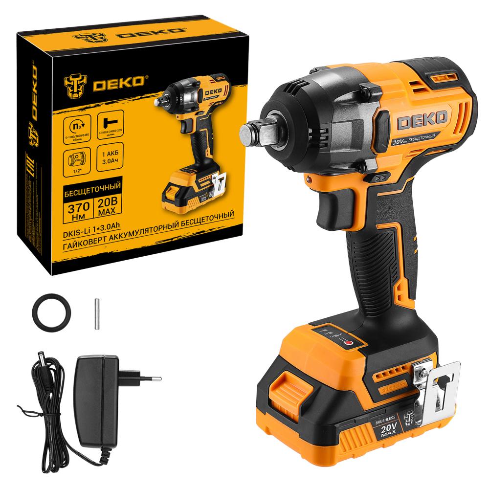 Гайковерт аккумуляторный бесщеточный DEKO DKIS-Li, 20В, 1*3.0Ач, 370 Нм