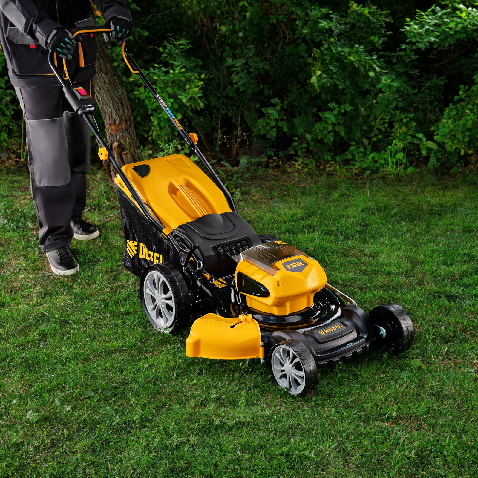 Газонокосилка аккумуляторная бесщеточная RLM450-36, Li-ion, 36 В, 4 Ач, 450 мм, травосборник 40 л Denzel