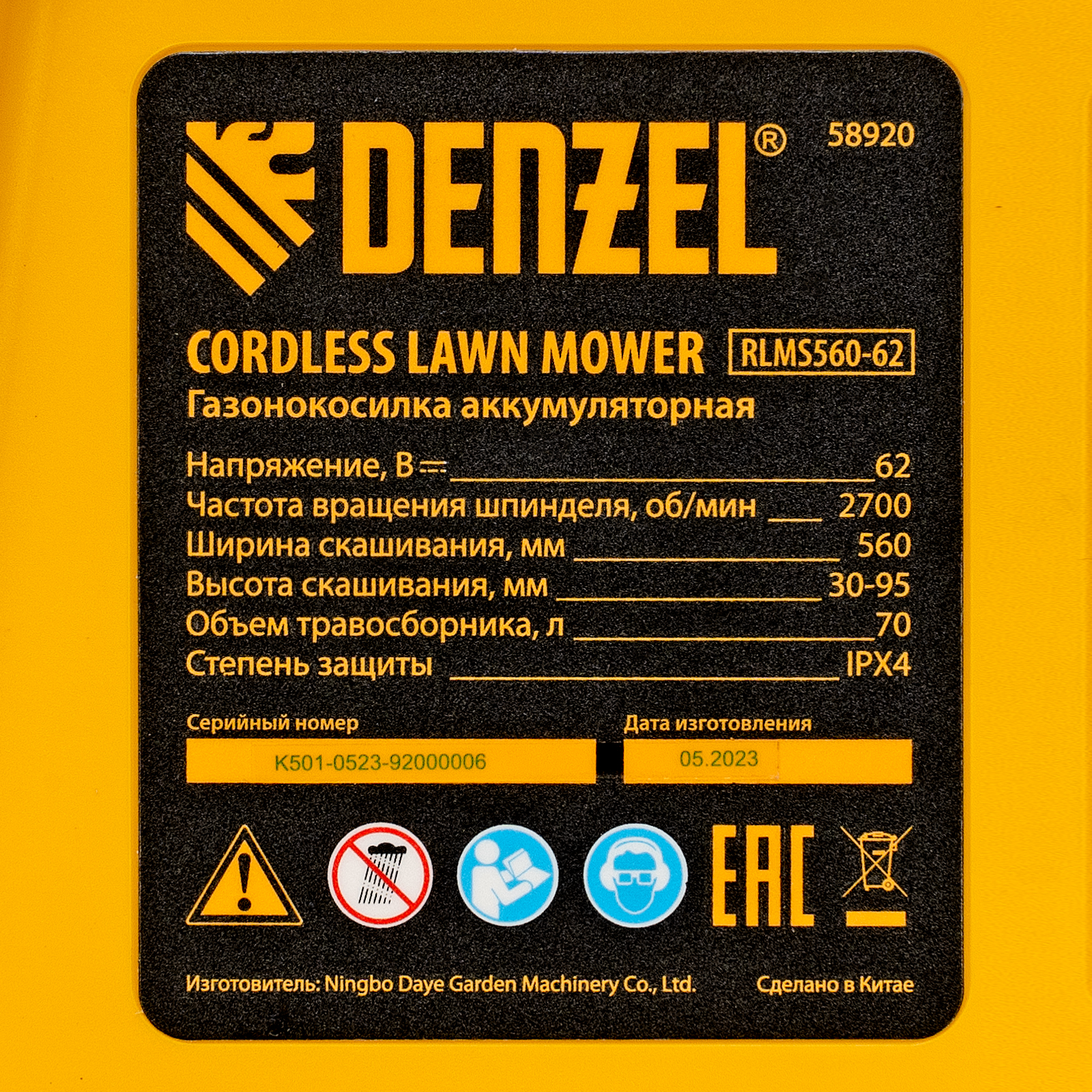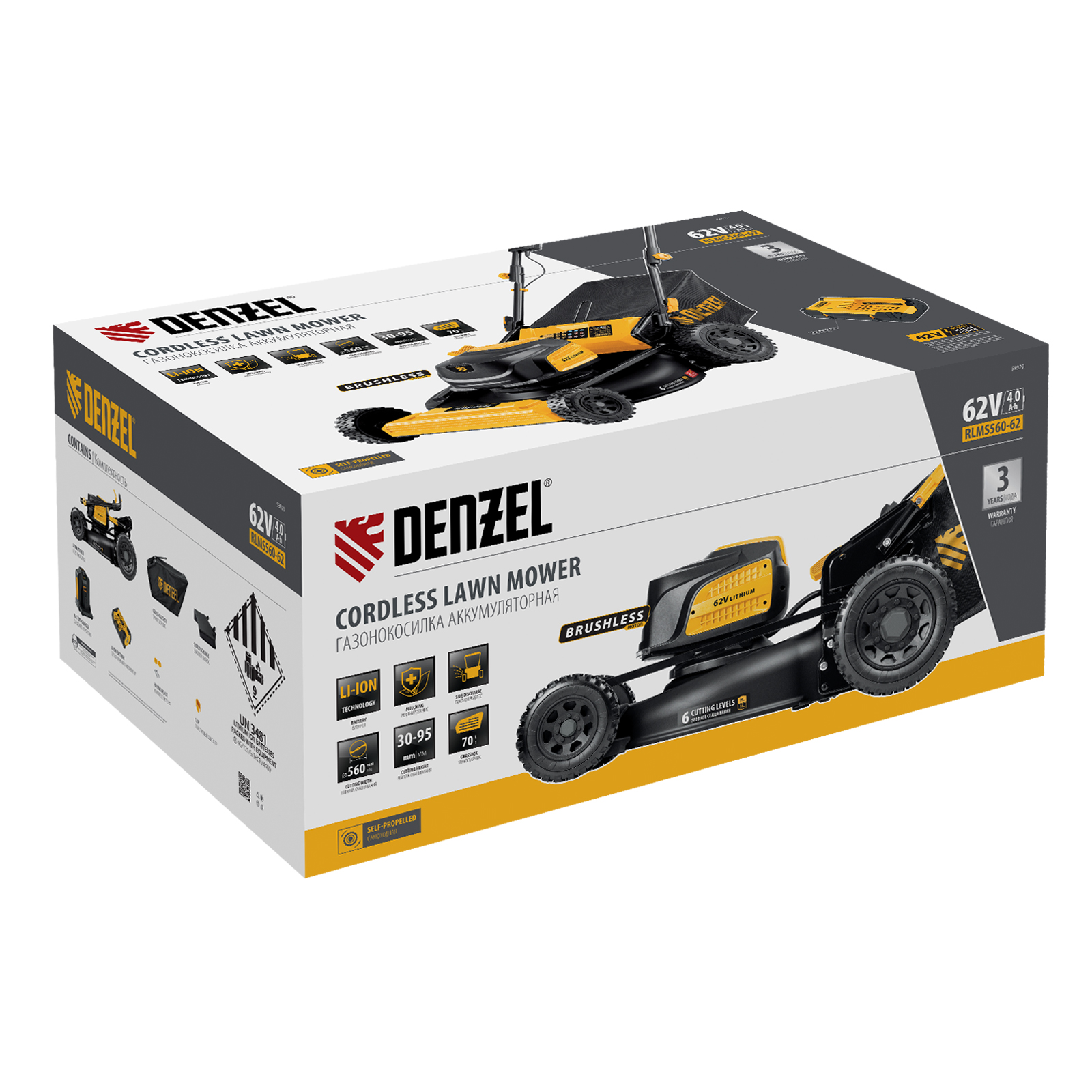 Газонокосилка аккумуляторная бесщет., RLMS560-62, привод, 560 мм, Li-ion, 62В Denzel