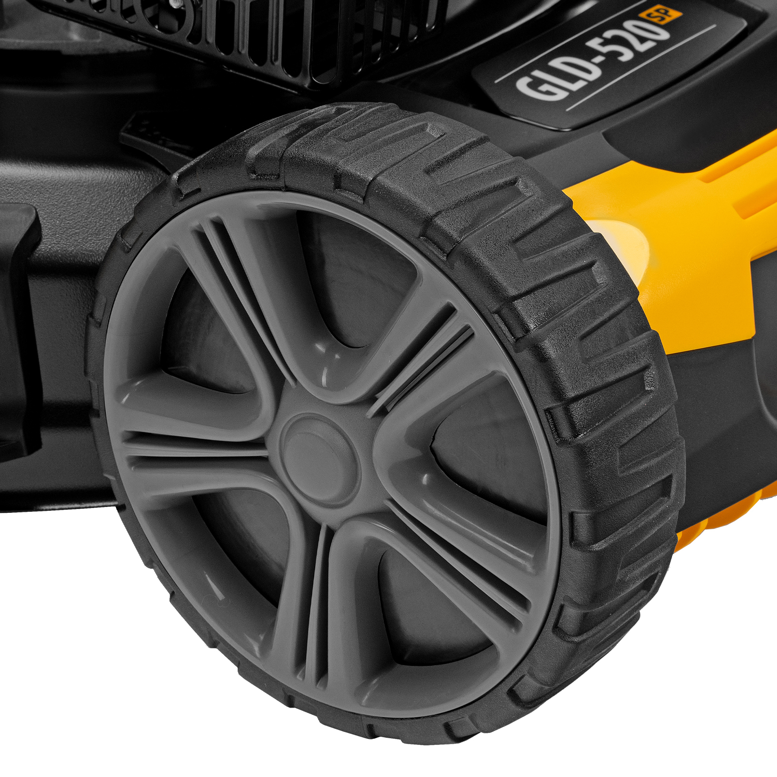 Газонокосилка функционирует в одном из 7-ступенчатая настройка высоты кошения в диапазоне 25-75 мм позволит создать любой тип газона, например, спортивный, мягкий, партерный или обыкновенный. GLD-520SP не предназначена для коммерческого использования.