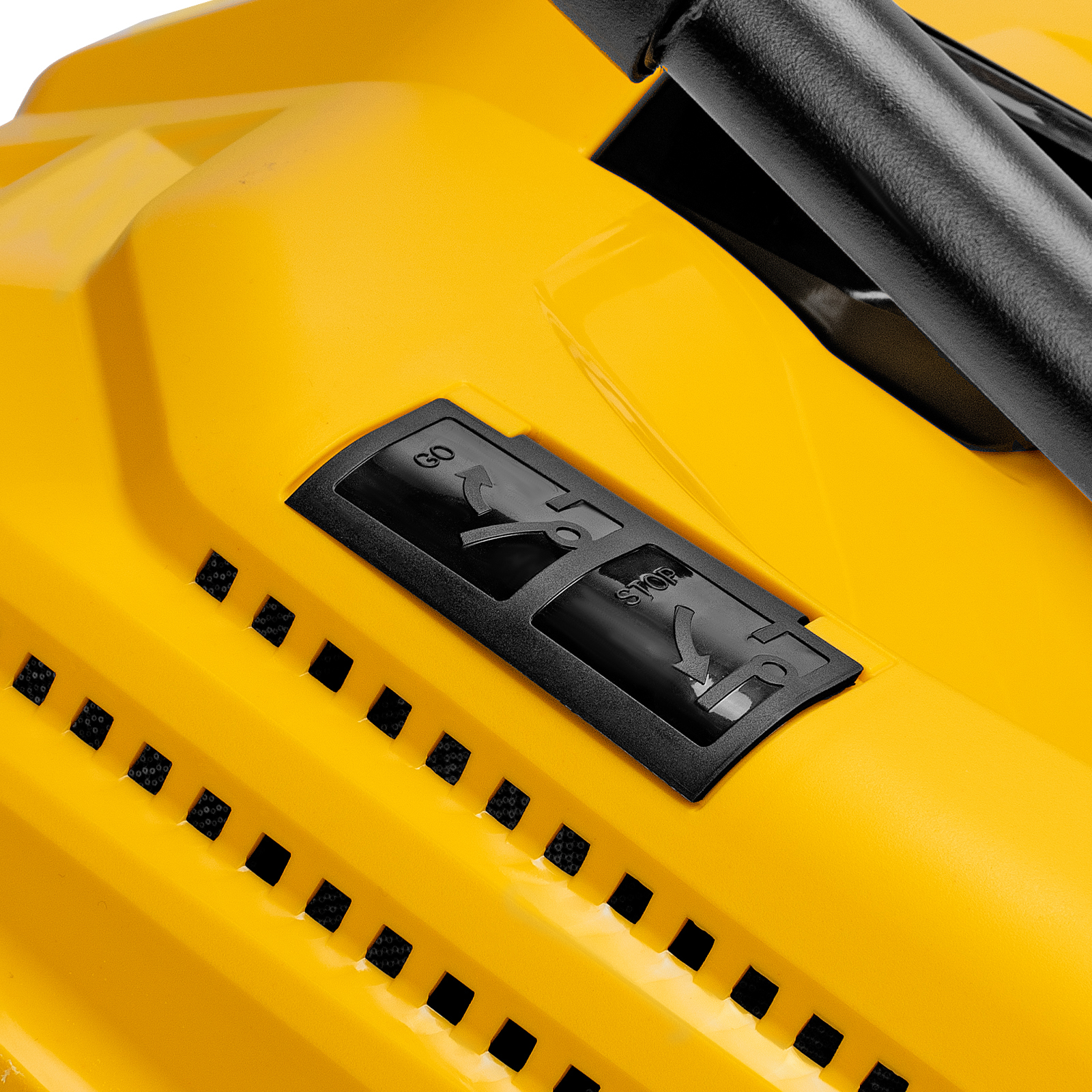 - Выигрышное расположение фиксатора стартера — он установлен на боковой части рукоятки и позволяет запустить двигатель, не покидая рабочего положения.