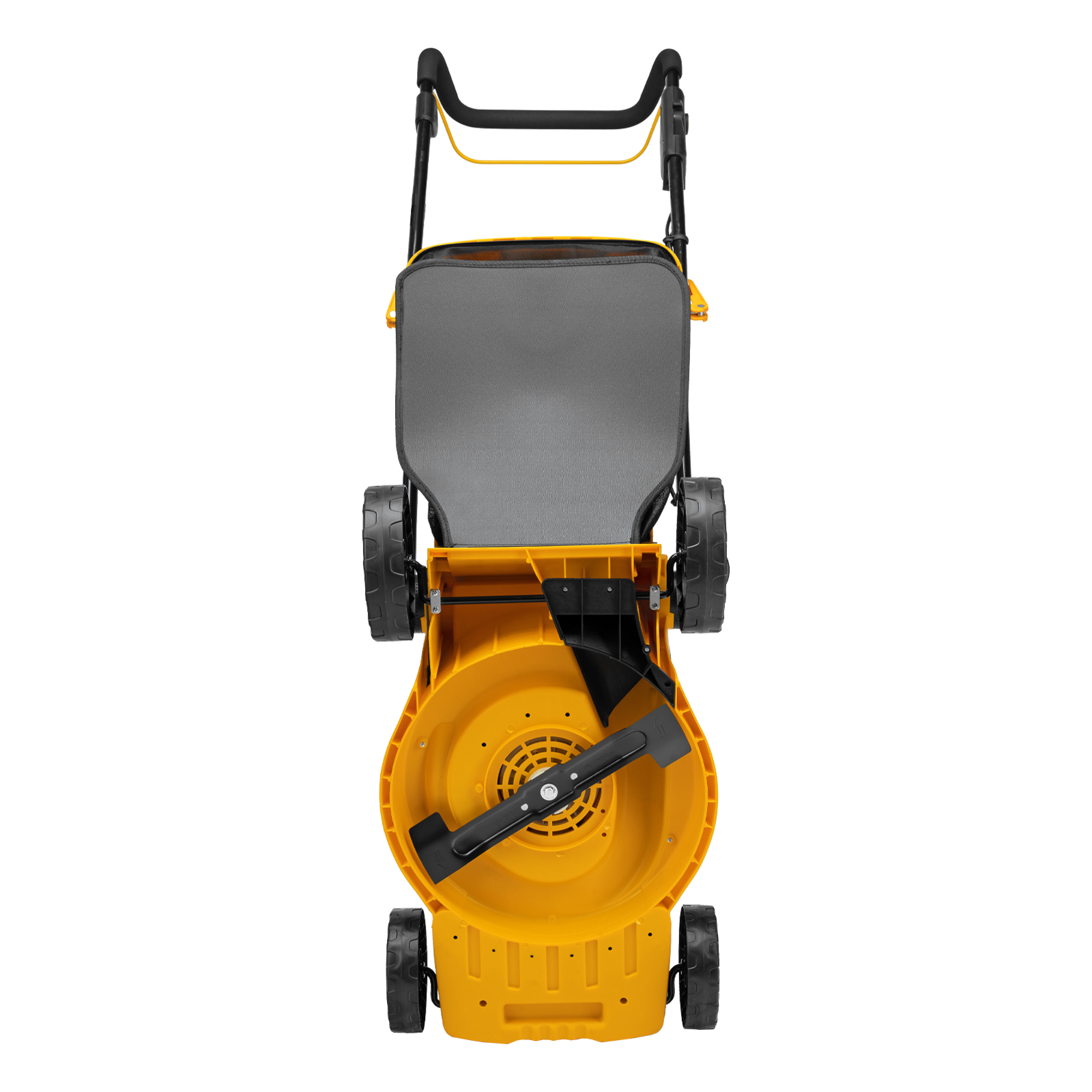- Рукоятка на корпусе — газонокосилку удобно перемещать и загружать в машину для транспортировки.