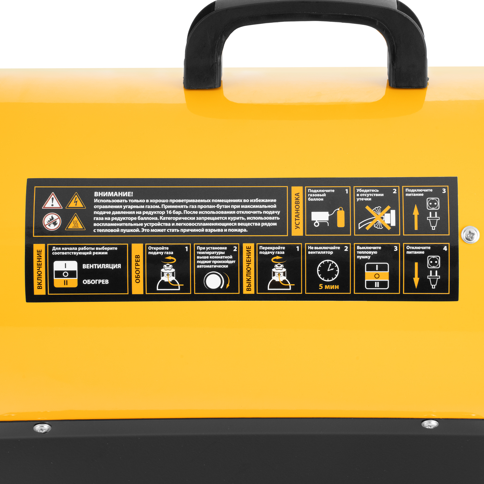 - Цифровой термостат — если температура в помещении становится ниже заданной, пушка включается автоматически для точного поддержания выставленных значений.