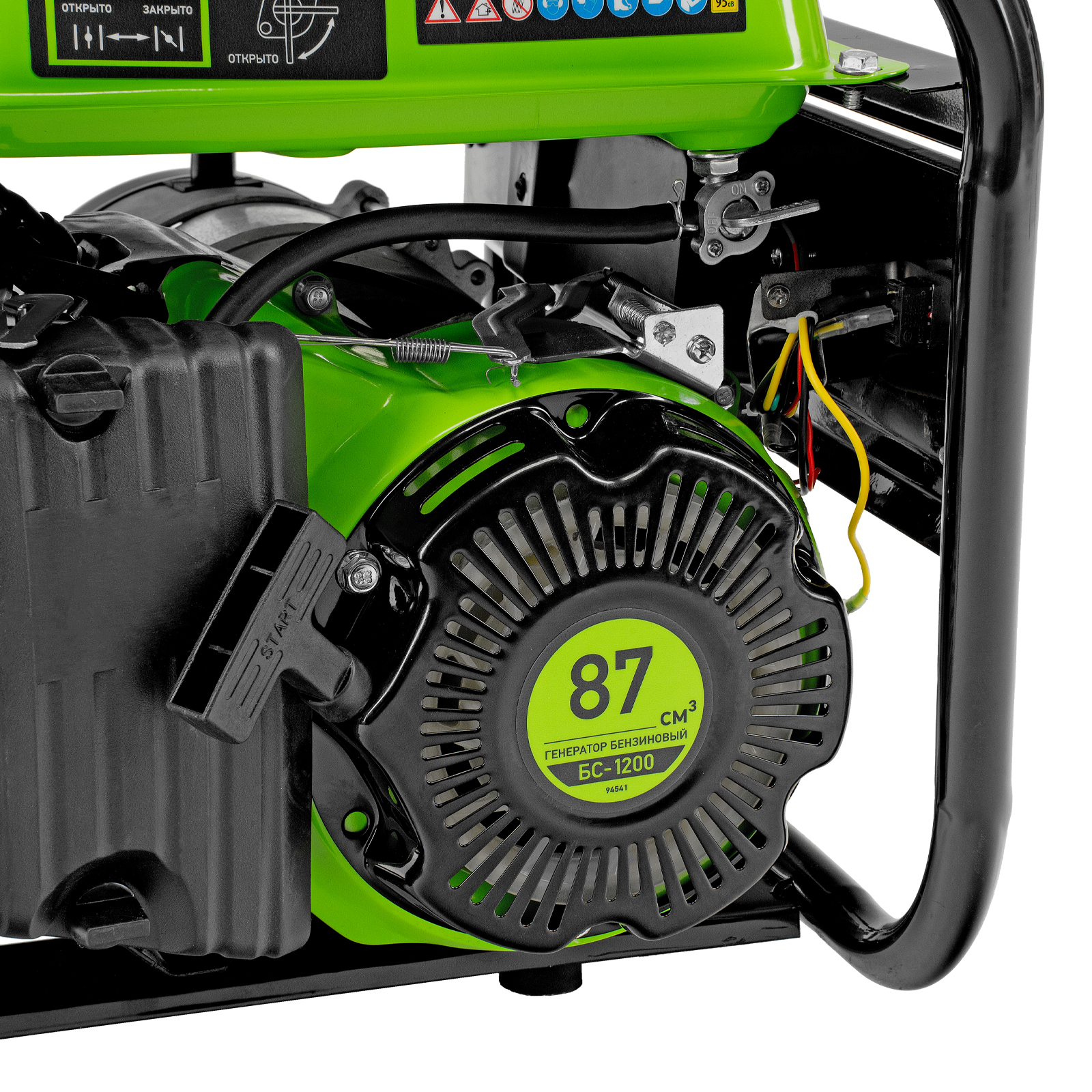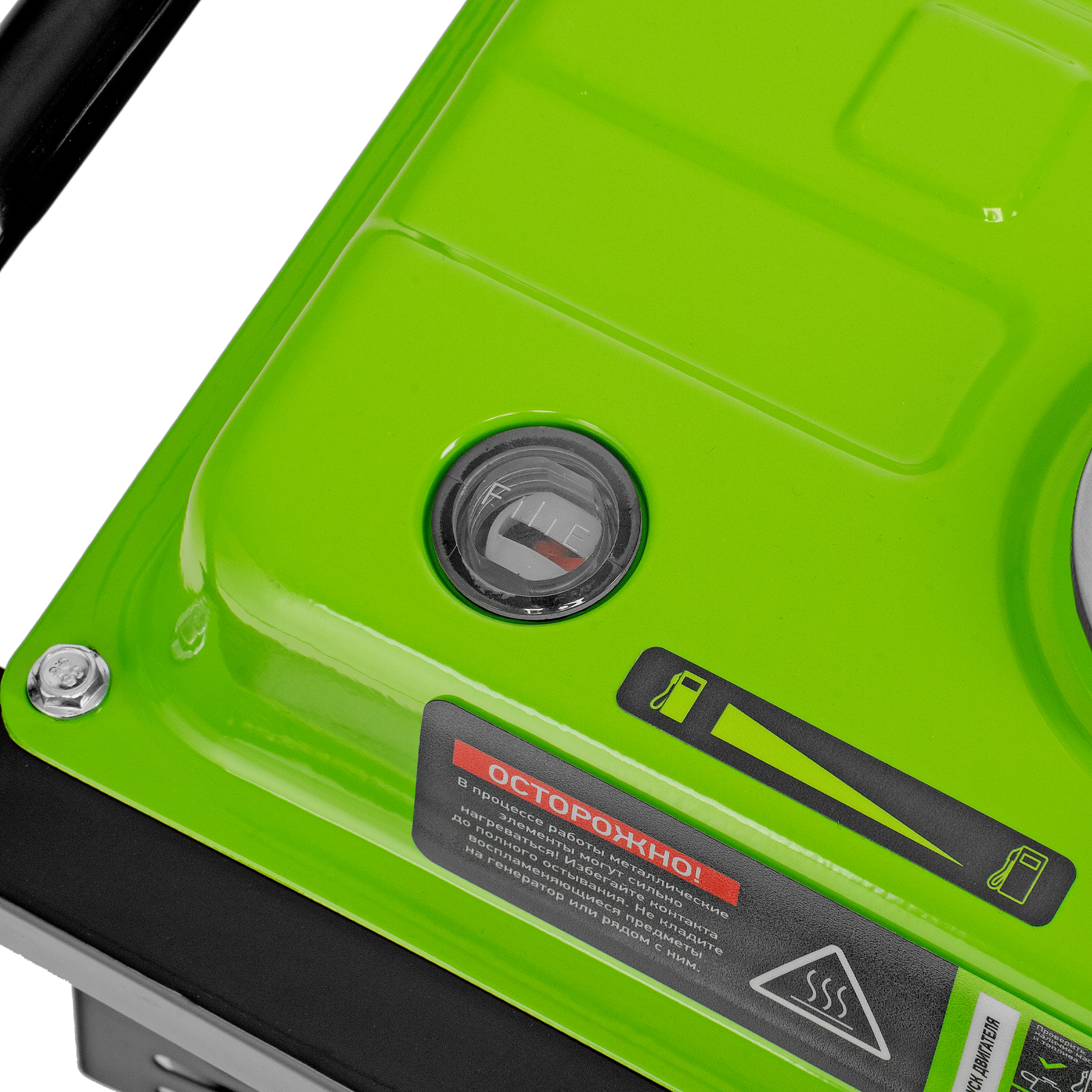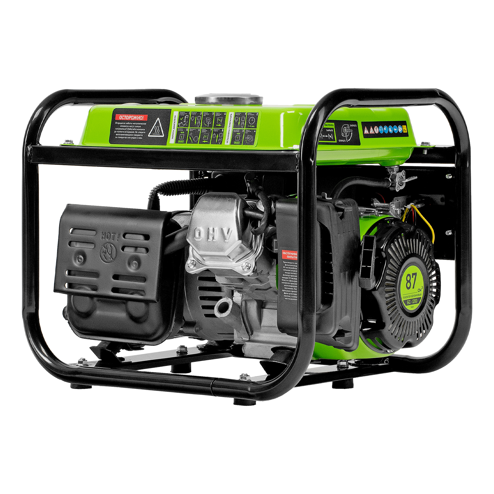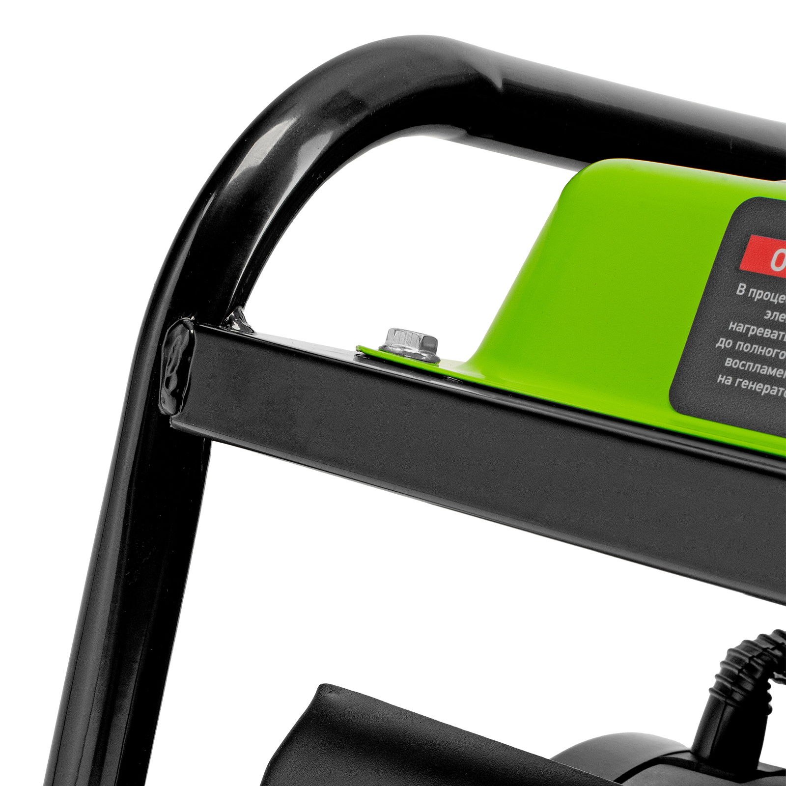 - Прочная конструкция — стальная рама защищает генератор от повреждений, а ее верхние элементы можно использовать как ручки для транспортировки.