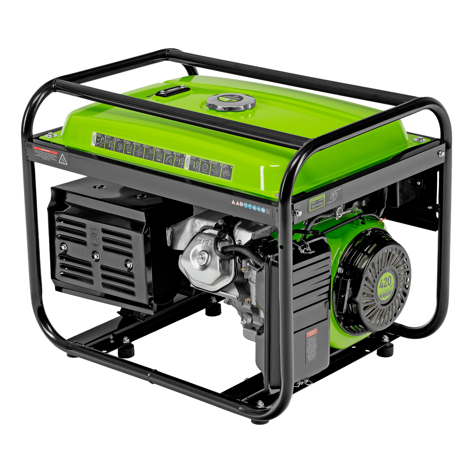- Надежность — медная обмотка альтернатора и стальной распредвал выдерживают высокие нагрузки, прочная стальная рама защищает от повреждений.