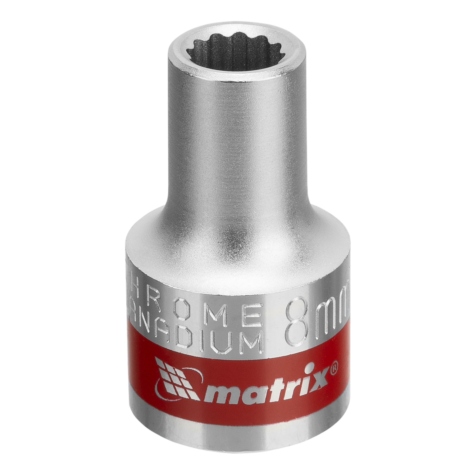 Головка торцевая, 8 мм, двенадцатигранная, CrV, под квадрат 1/2, хромированная Matrix