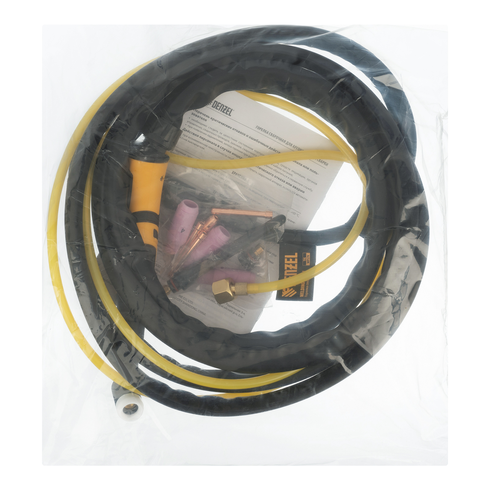Сварочная горелка Denzel TIG WP17V 93643 с рукавом длиной 4 м предусматривает прямое подключение к баллону и используется для аргонодуговой сварки неплавящимся электродом диаметром 1-3,2 мм. Максимальная величина постоянного сварочного тока составляет 140 A, переменного — 125 A. Горелка подходит для работы со сталями и цветными металлами, в т.ч. алюминием.
