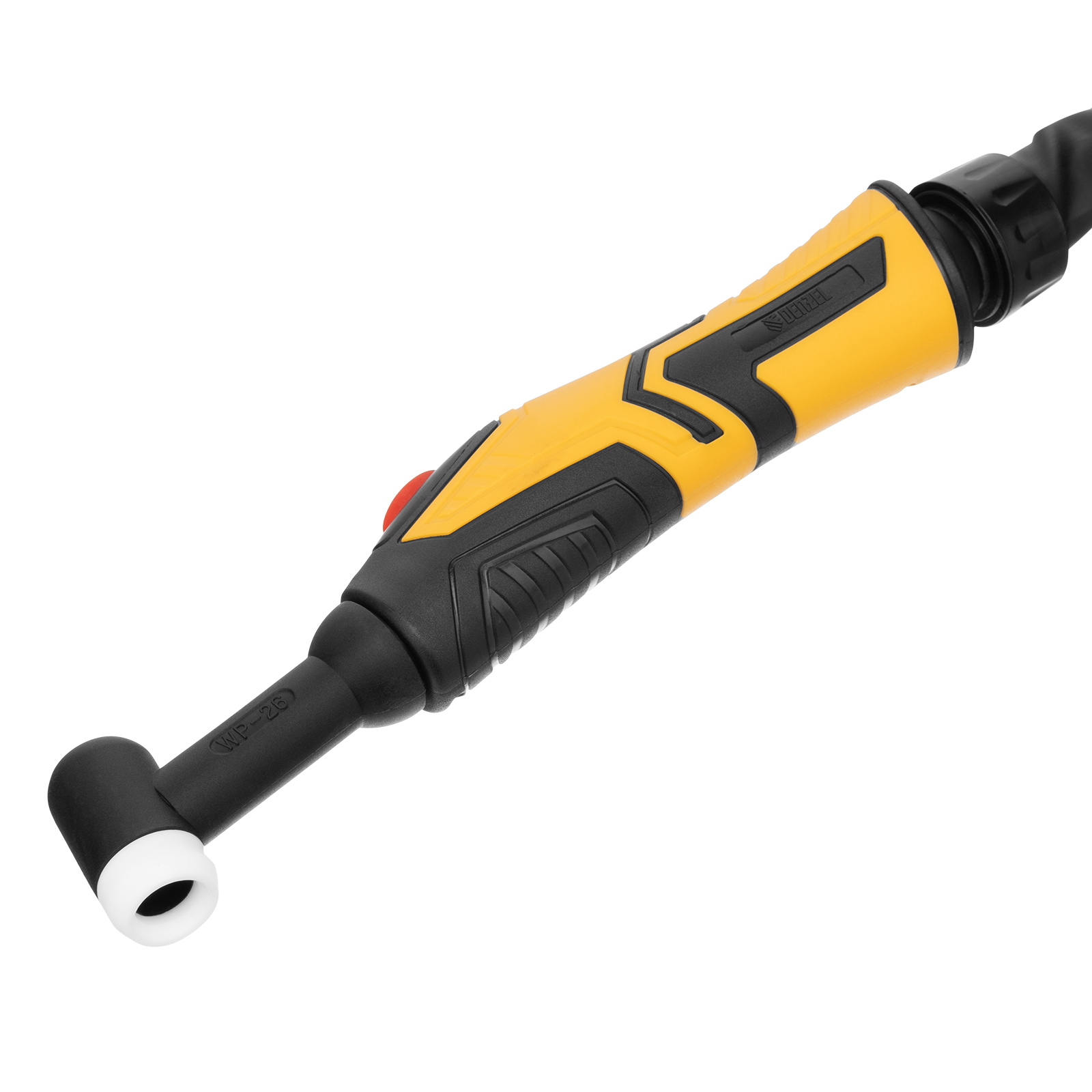 Сварочная горелка Denzel TIG WP26 93644 с рукавом длиной 3 м и управляющим разъемом на 2 пина используется для аргонодуговой сварки неплавящимся электродом диаметром 1-4 мм. Максимальная величина постоянного сварочного тока составляет 180 A, переменного — 150 A. Горелка подходит для работы со сталями и цветными металлами, в т.ч. алюминием.