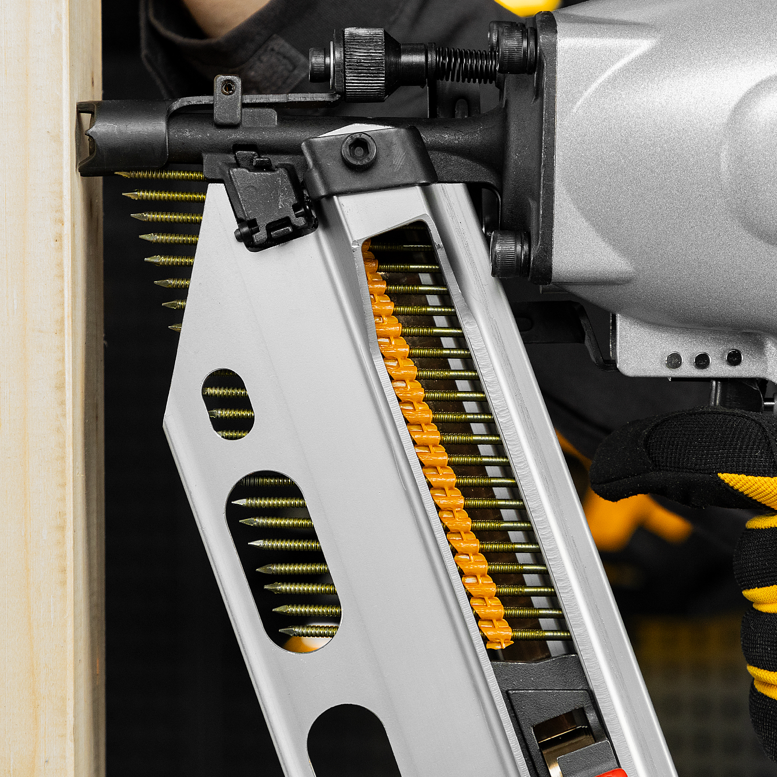 • Надежное и долговечное соединение — гвозди не гнутся, рифленая рабочая часть исключает их самопроизвольный выход из своих гнезд.