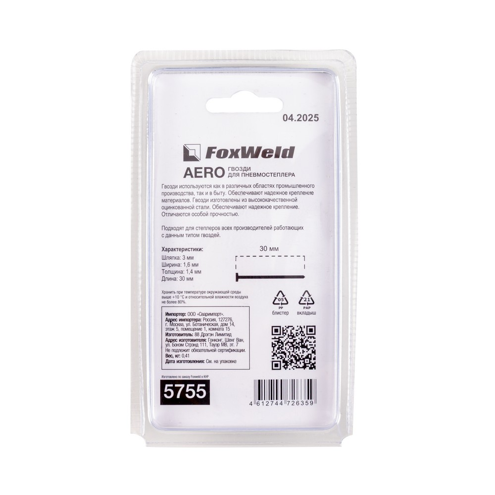 Гвозди для пневмостеплера тип 16GA T30, 1,4 х 30 мм 1000 шт. AERO в Санкт-Петербурге