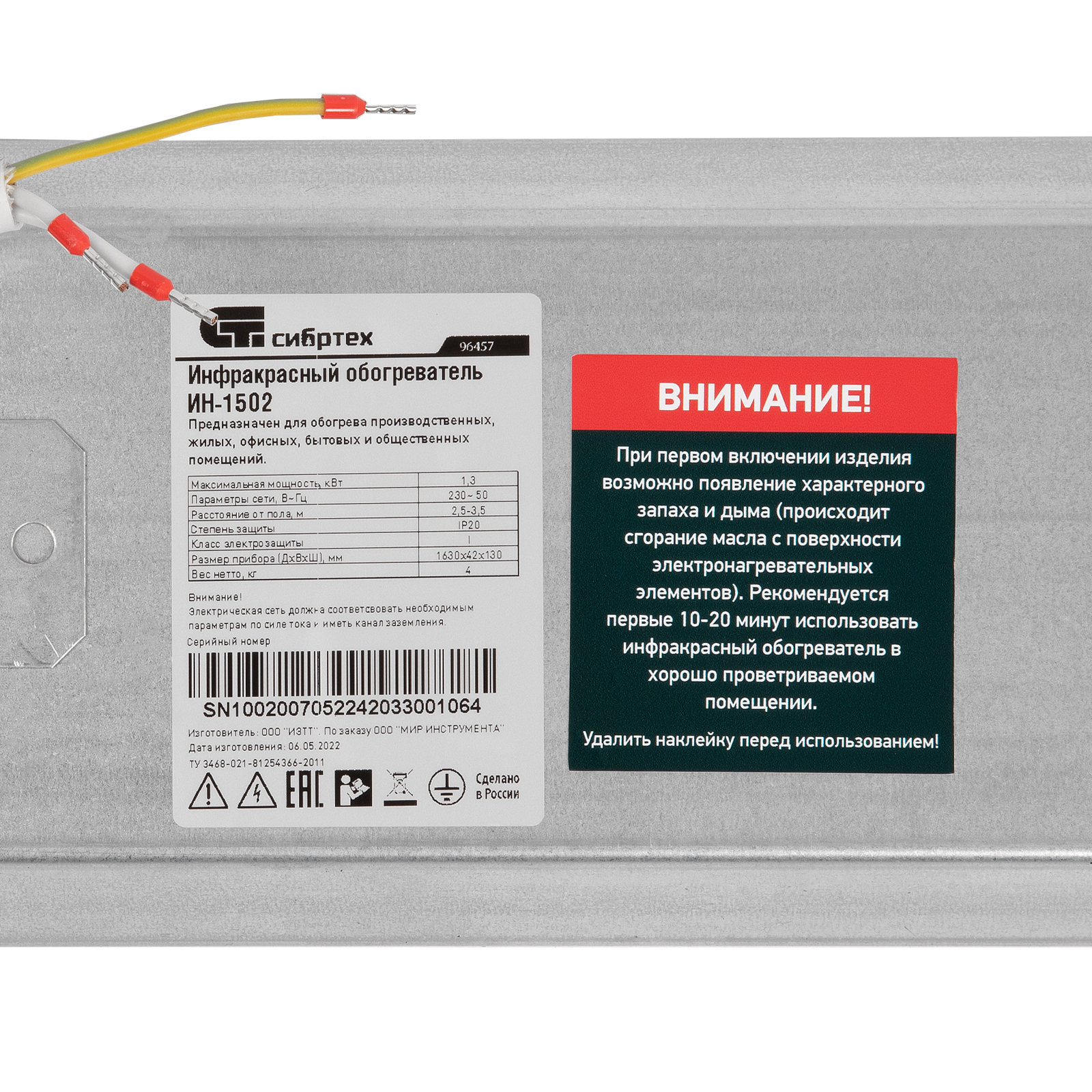 Инфракрасный обогреватель ИН- 1502, 230В, 1300 Вт Сибртех