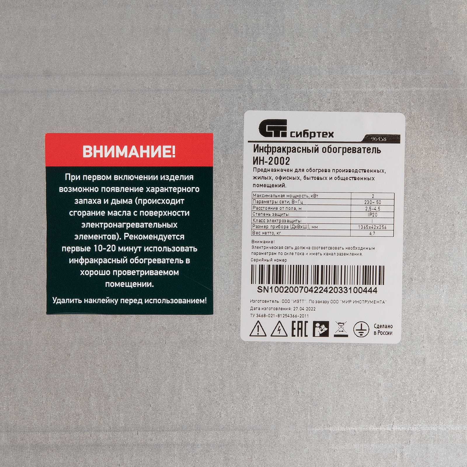 Инфракрасный обогреватель ИН- 2002, 230В, 2000 Вт Сибртех