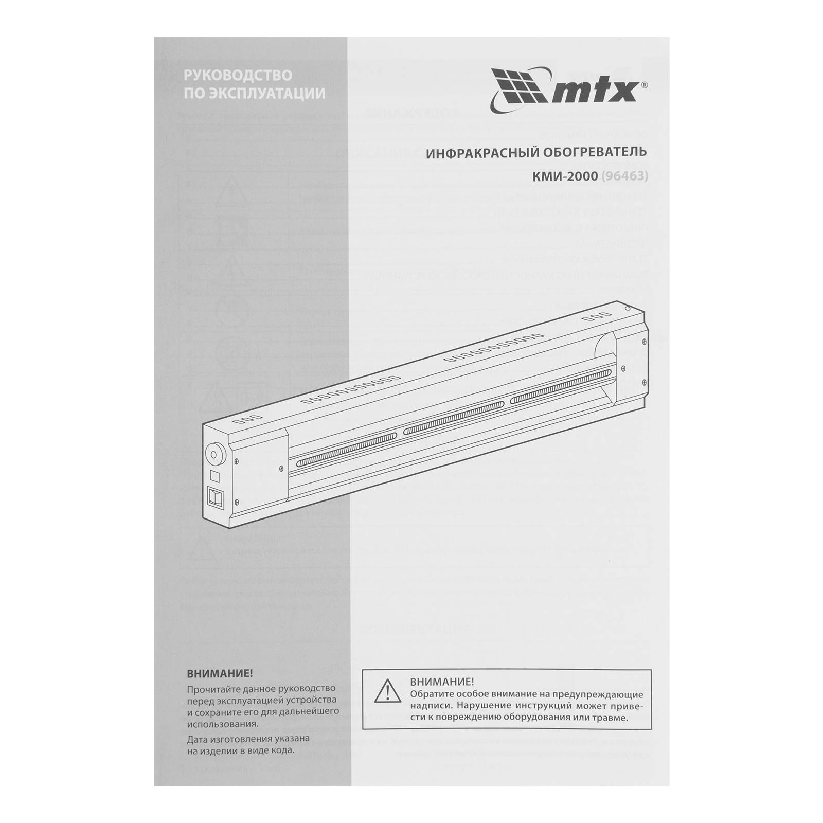 Инфракрасный обогреватель КМИ-2000, 230В, 2000 Вт, плавная регулировка мощности MTX в Санкт-Петербурге