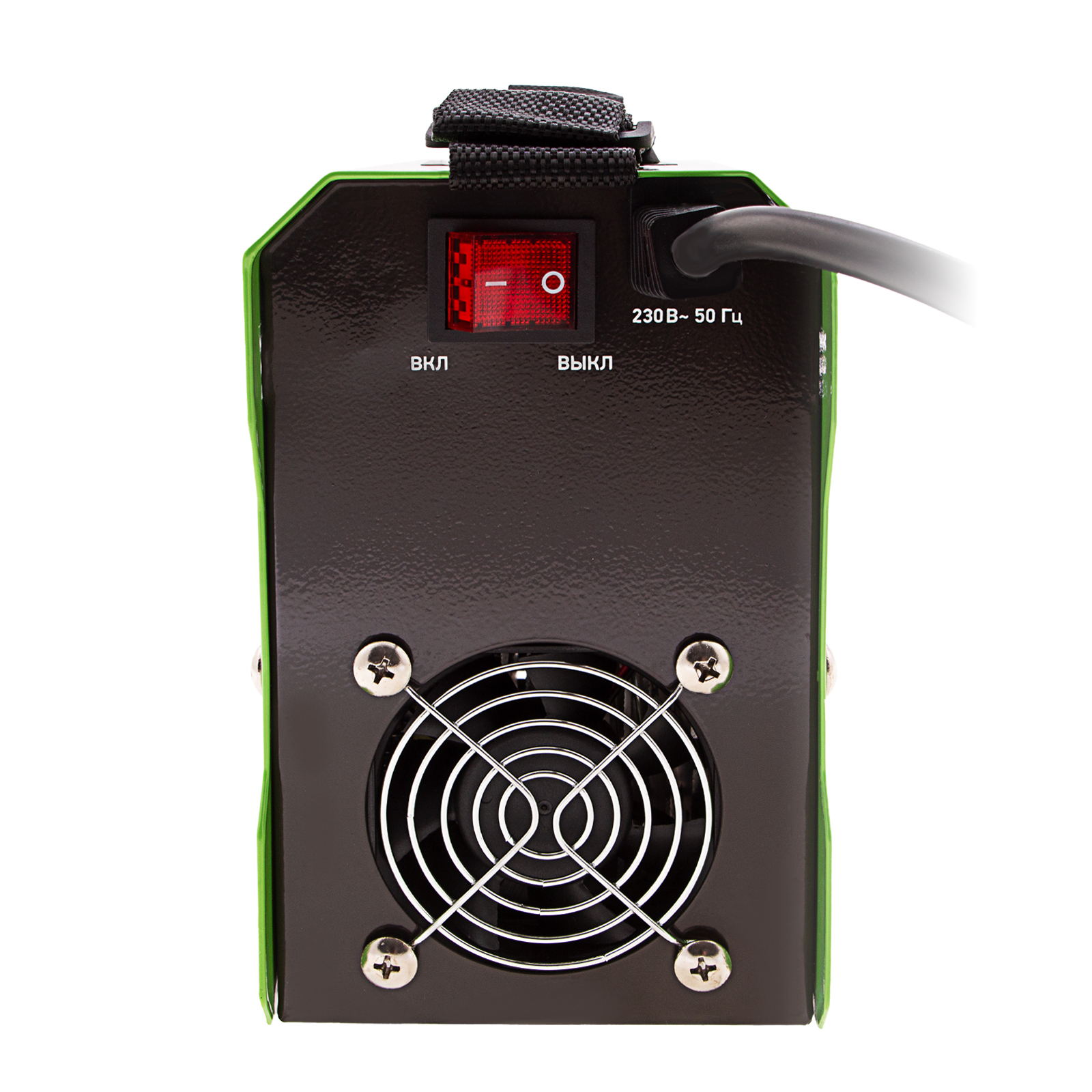 - Полный комплект поставки — кабель с электрододержателем и кабель с зажимом «земля» не придется докупать отдельно.