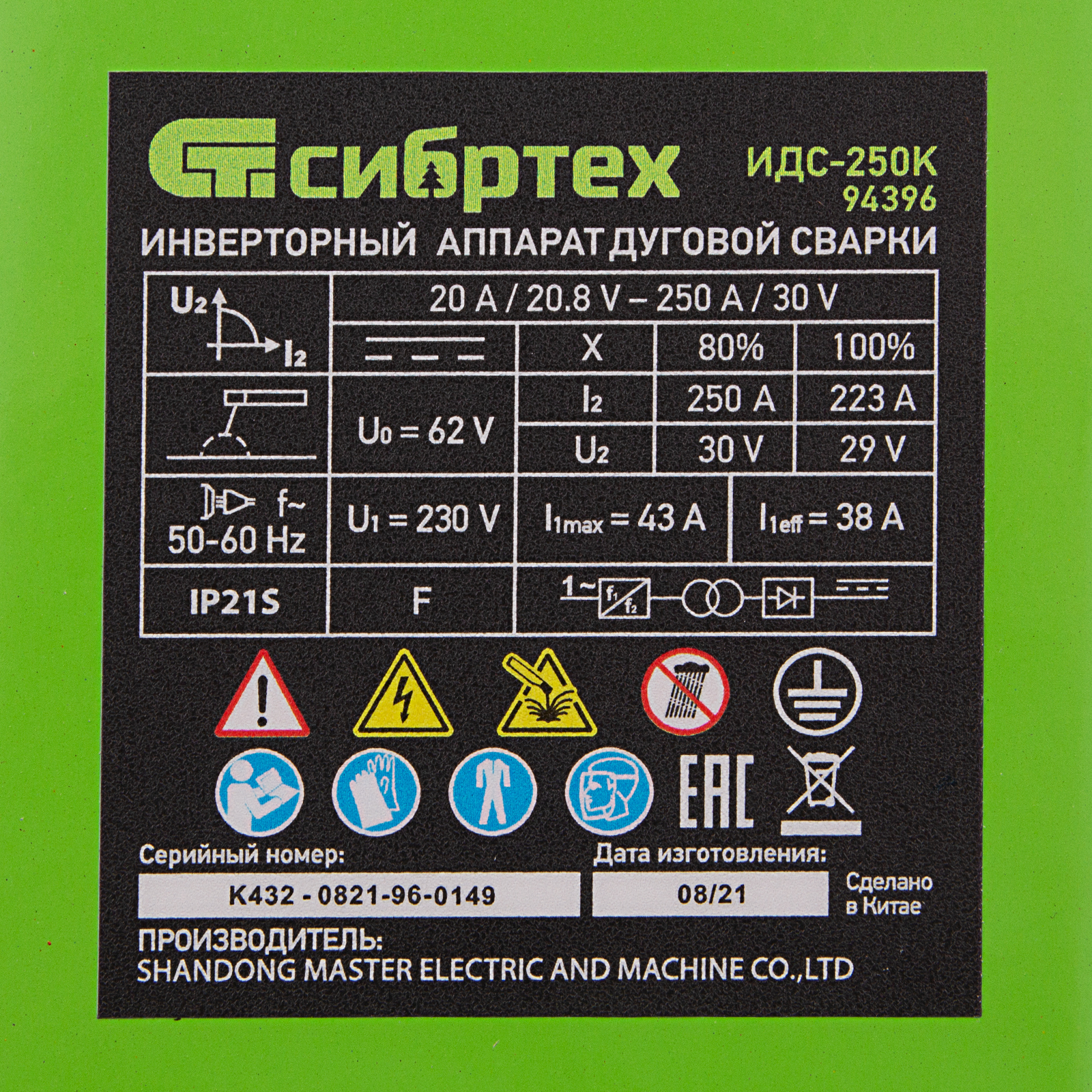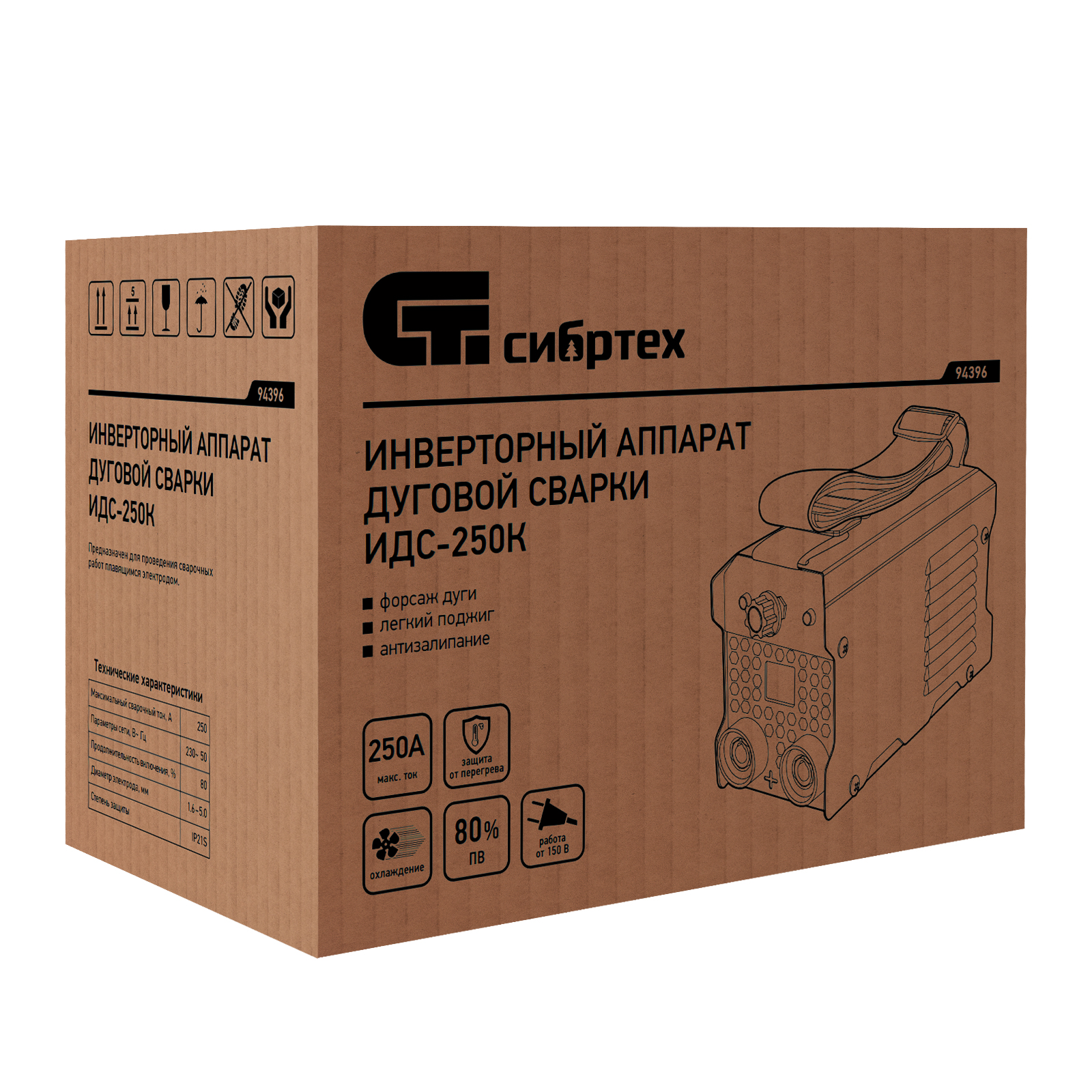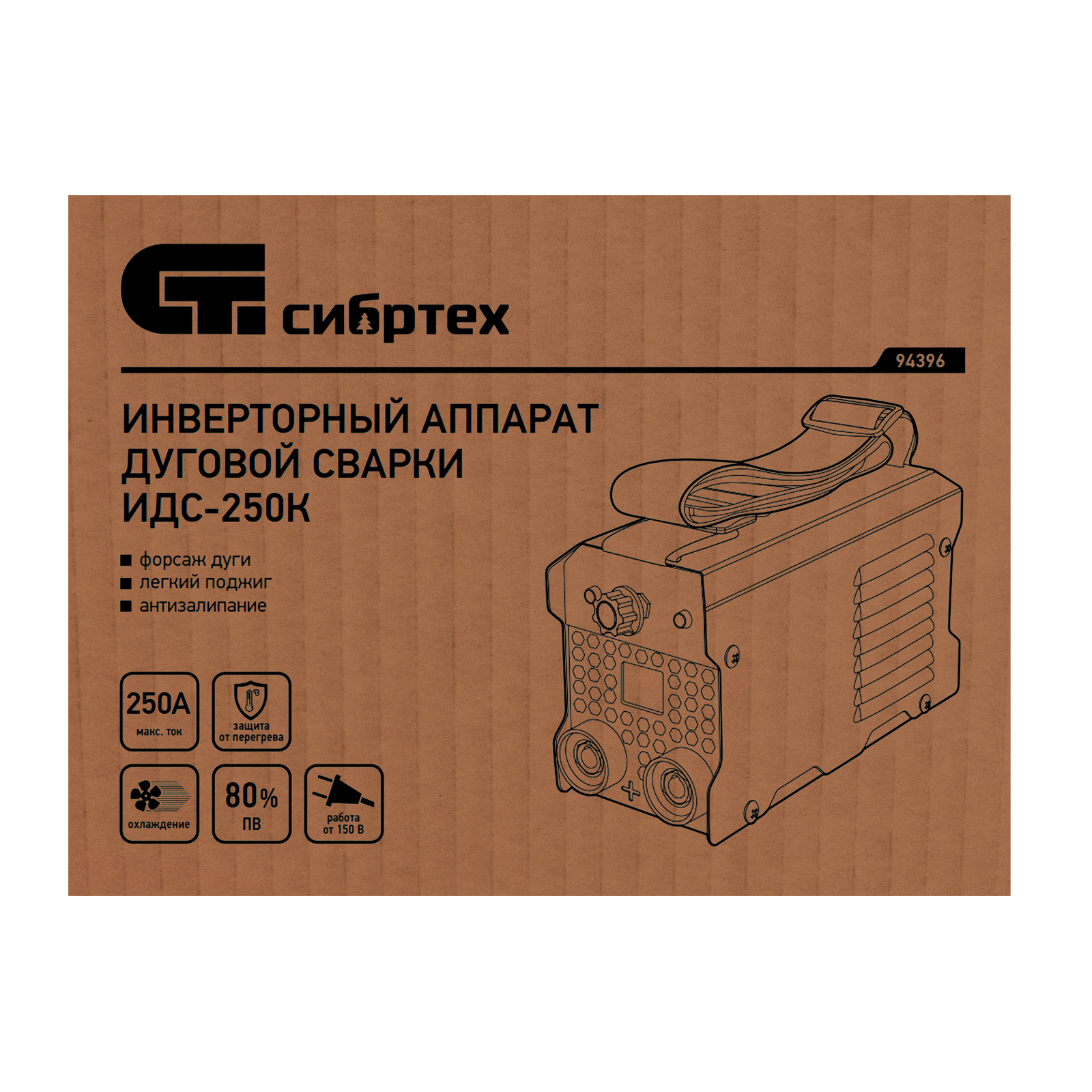Инверторный аппарат дуговой сварки ИДС-250K, 250 А, ПВ 80%, диаметр электрода 1,6-5 мм Сибртех в Санкт-Петербурге
