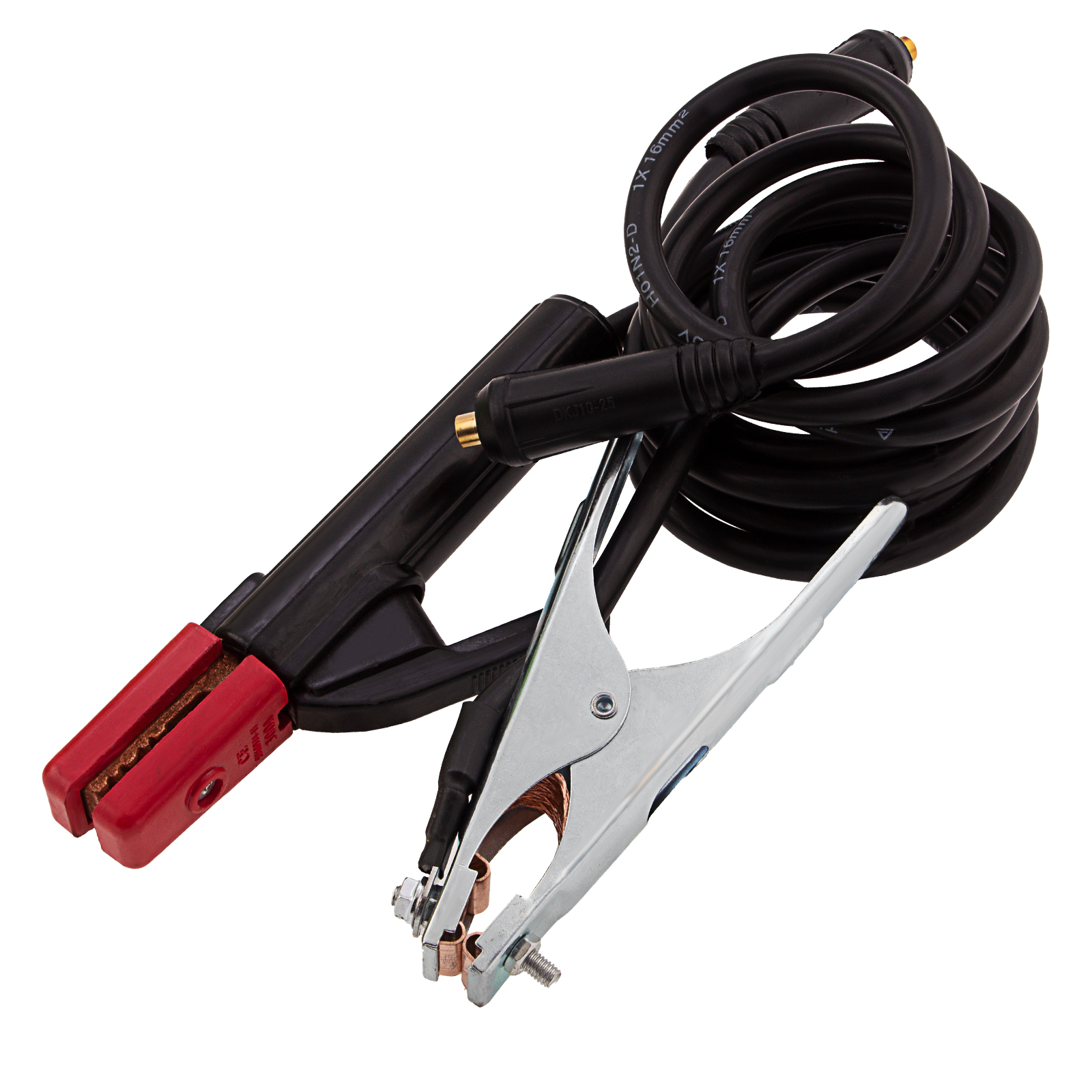 - Полный комплект поставки — кабель с электрододержателем и кабель с зажимом «земля» не придется докупать отдельно.