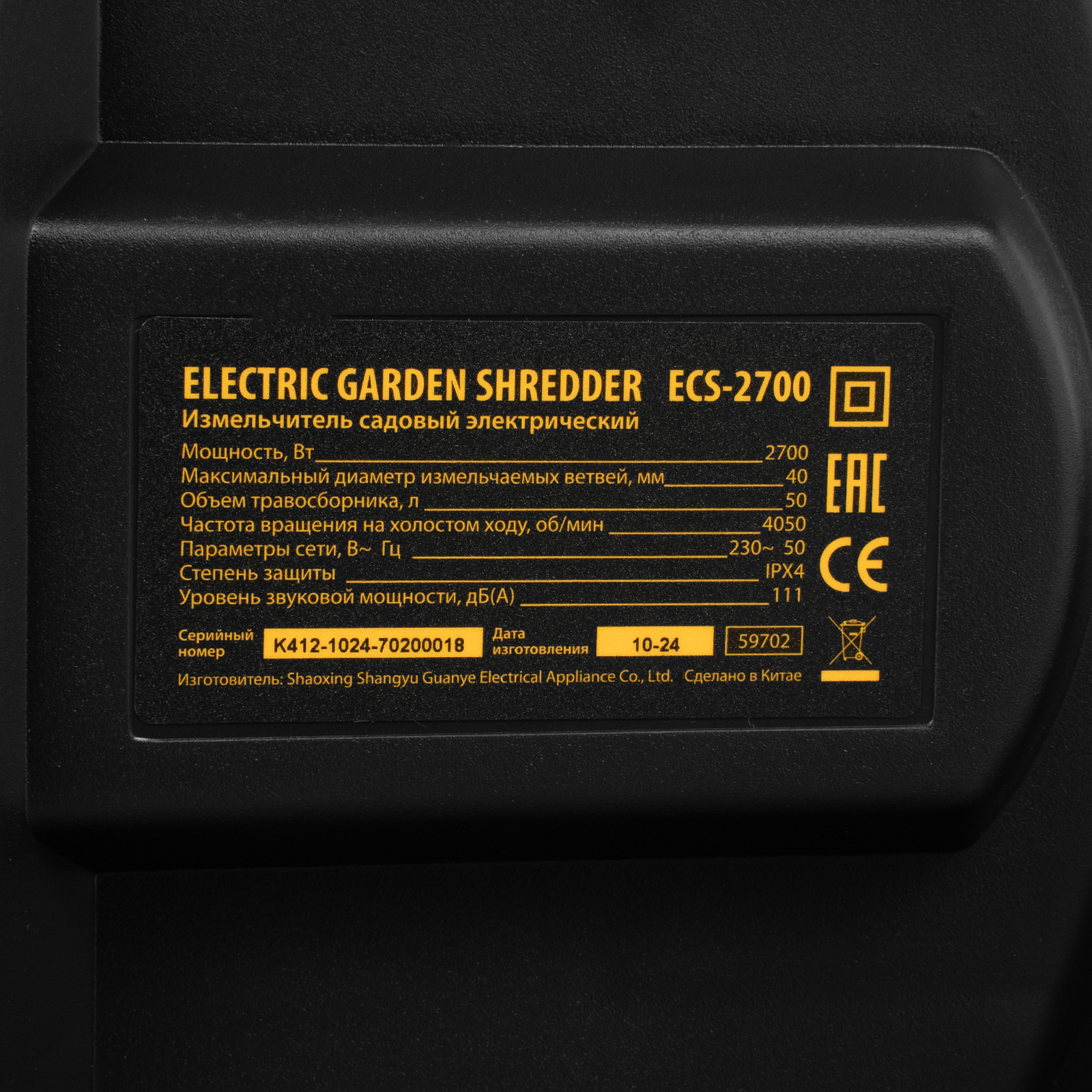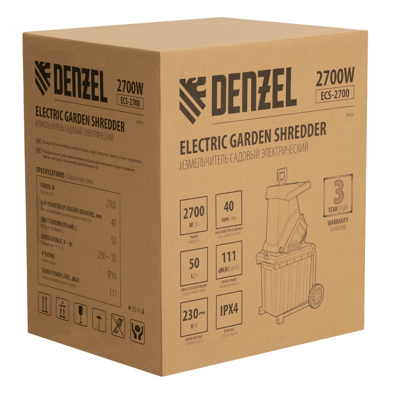 Измельчитель садовый электрический ECS-2700, 2700 Вт, 40 мм Denzel