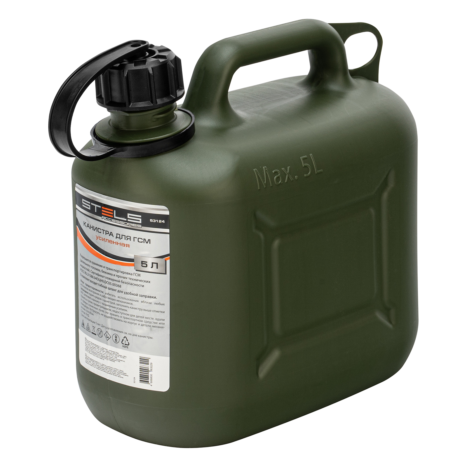 Канистра для ГСМ вертикальная 5 л, пластиковая, усиленная Stels