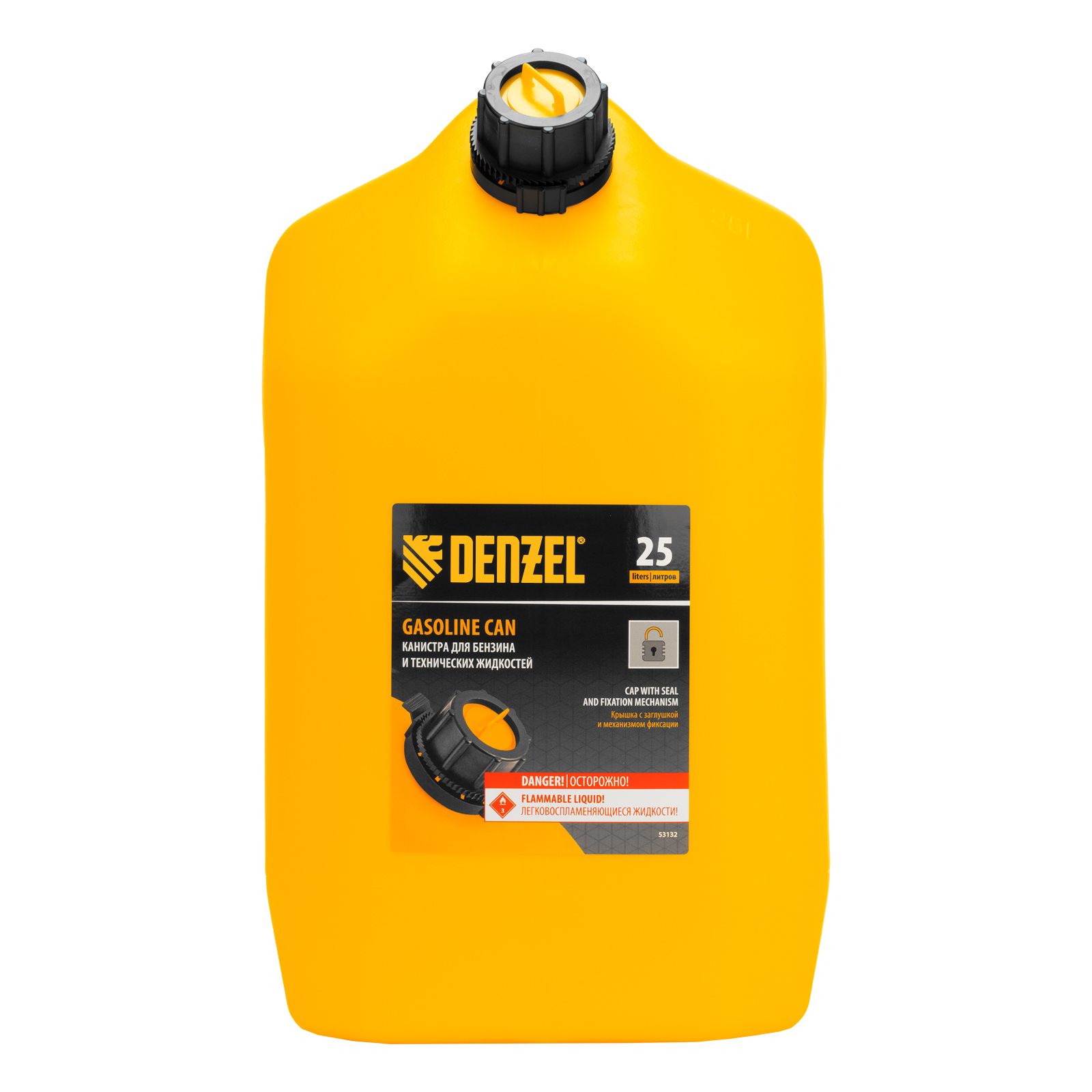 Премиум-канистра DENZEL 53132 объемом 25 л используется для хранения и транспортировки ГСМ. Ее удобно брать в дорогу, а также можно поставить на даче, или в гараже. Канистра пригодится для заправки автомобиля и бензотехники.