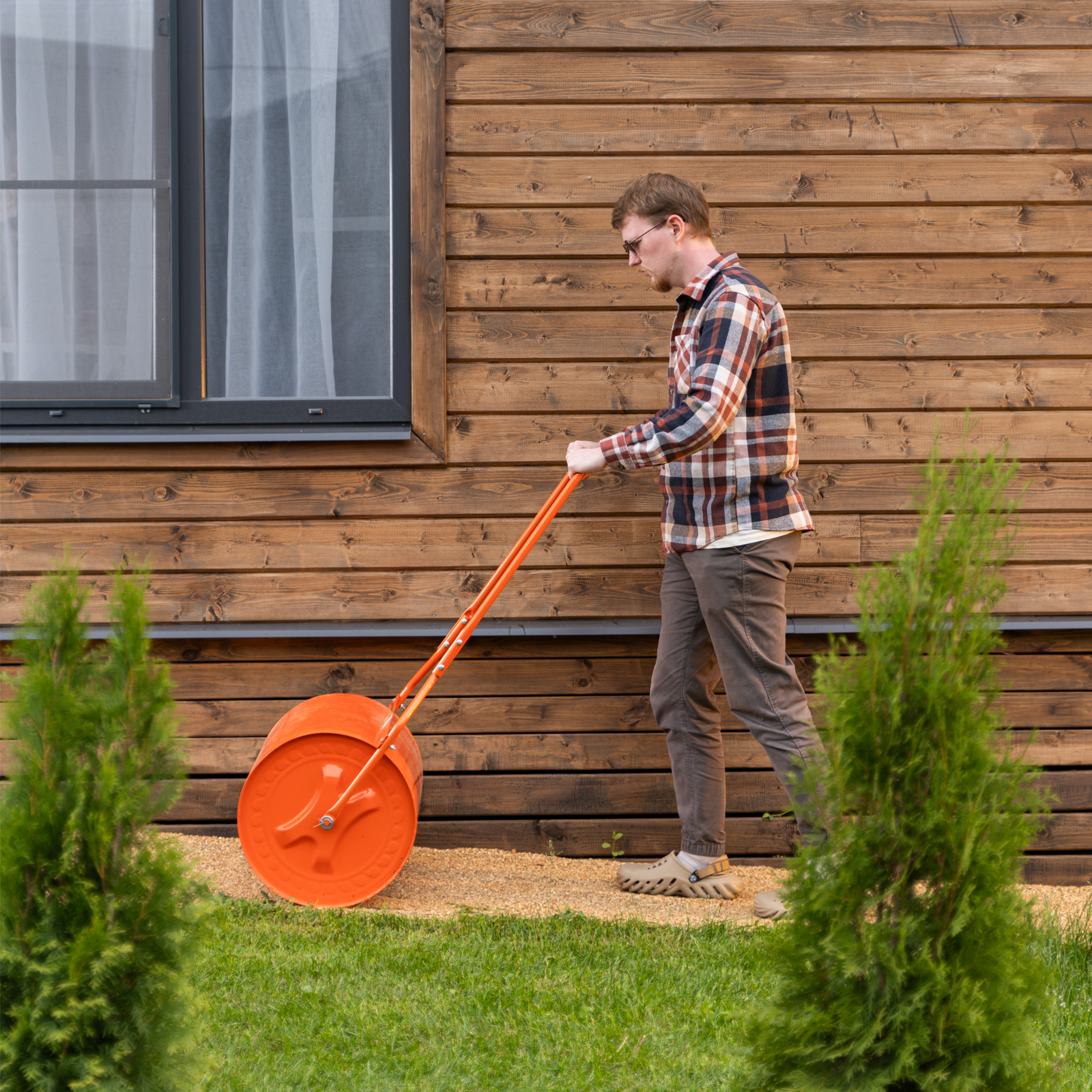 - Комфортная работа — благодаря П-образной рукоятке каток удобно перемещать даже при полной загрузке цилиндра.