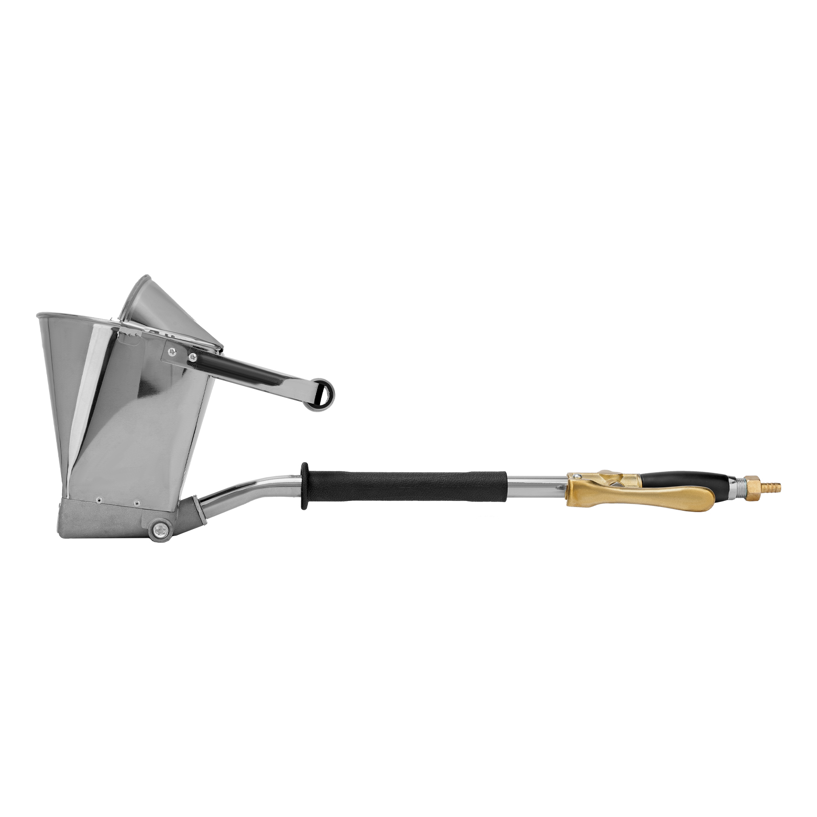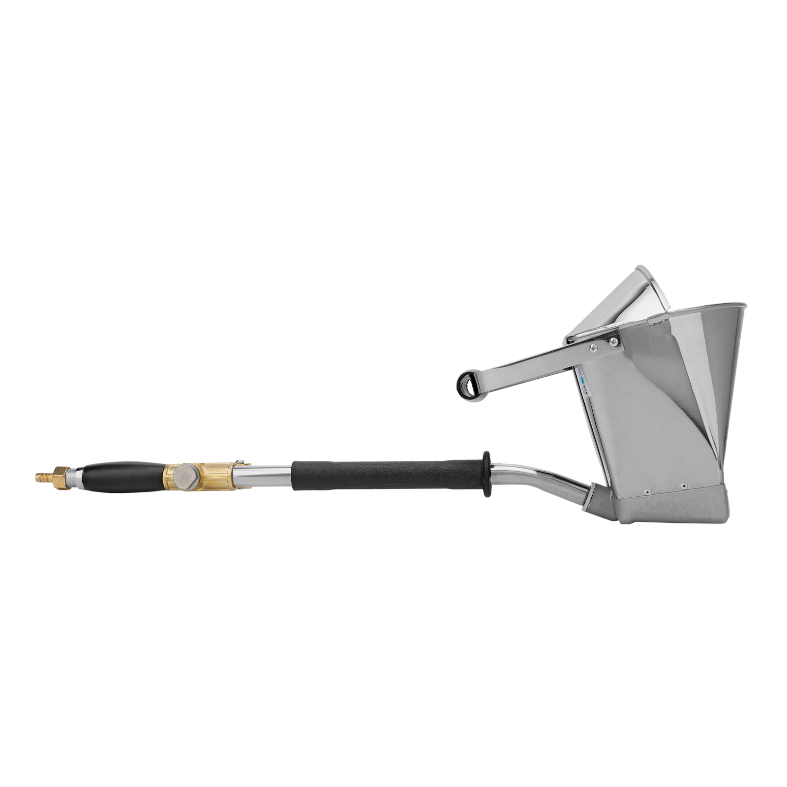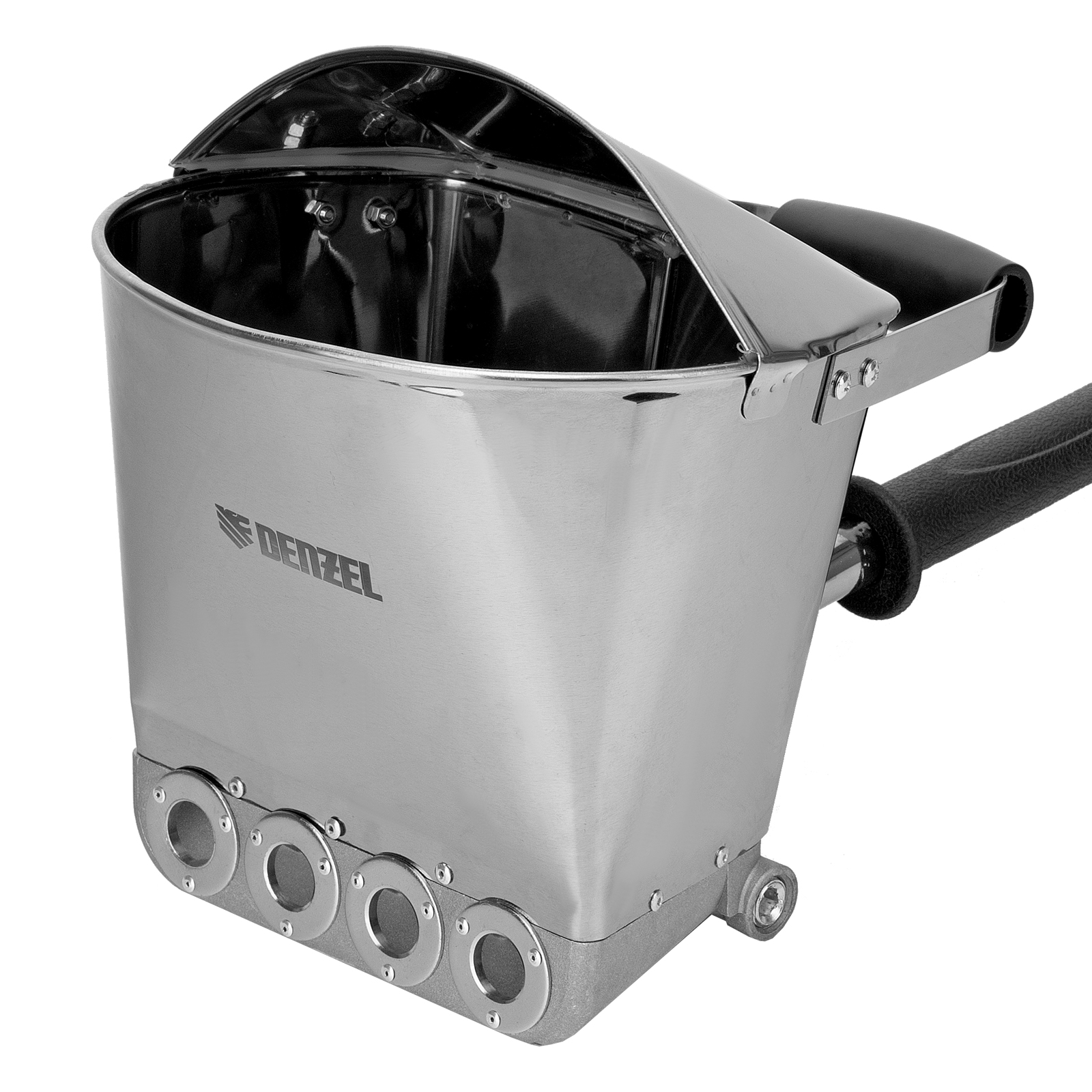 Хоппер-ковш Denzel HB1 57438 емкостью 4 л подключается к компрессору при помощи шланга с внутренним диаметром 10 мм и расходует 350 л сжатого воздуха в минуту. Используется для нанесения штукатурных растворов, позволяя ускорить выполнение отделочных работ и повысить их качество. 4 больших выходных сопла обеспечивают эффективное решение поставленных задач. Инструмент пригодится на строительной площадке.