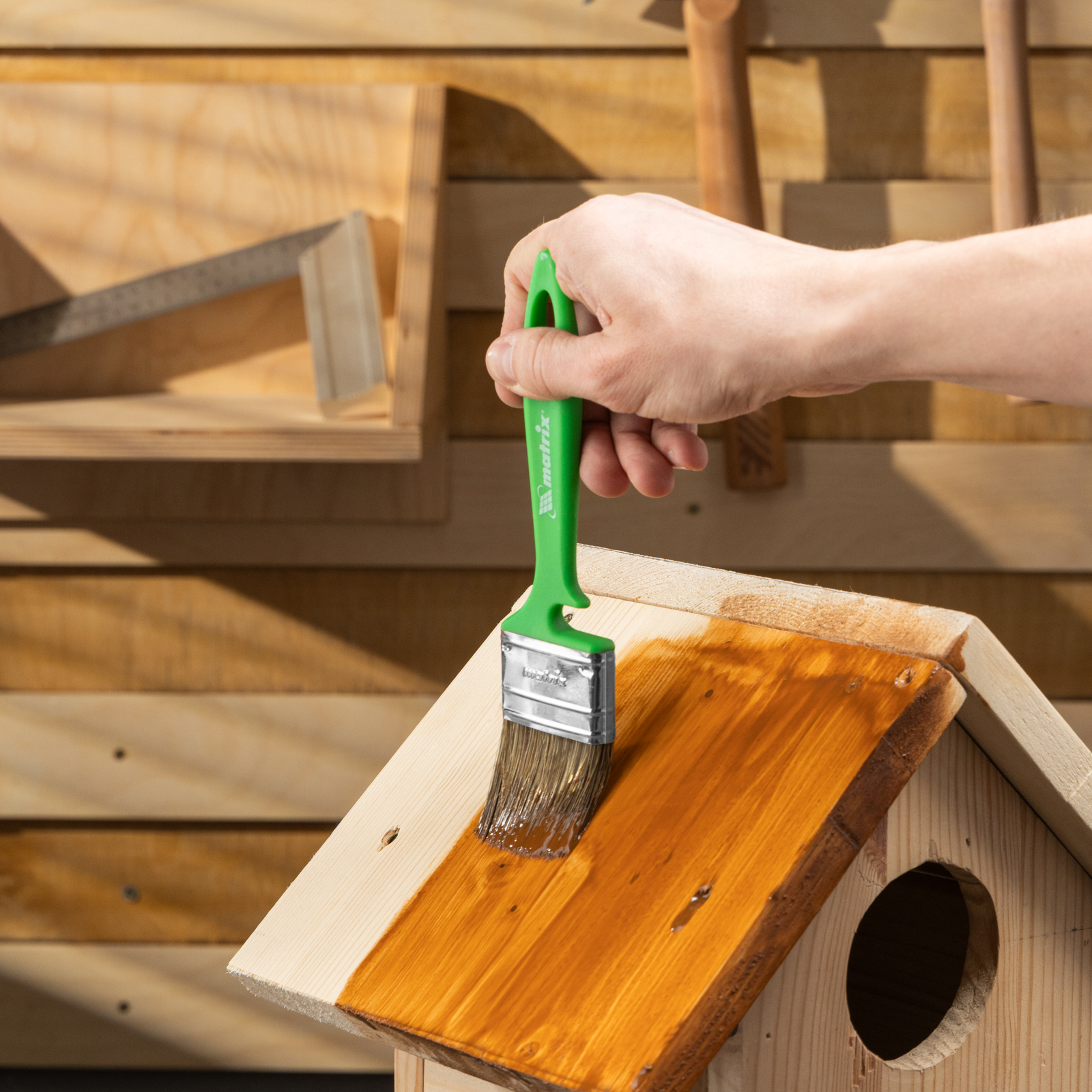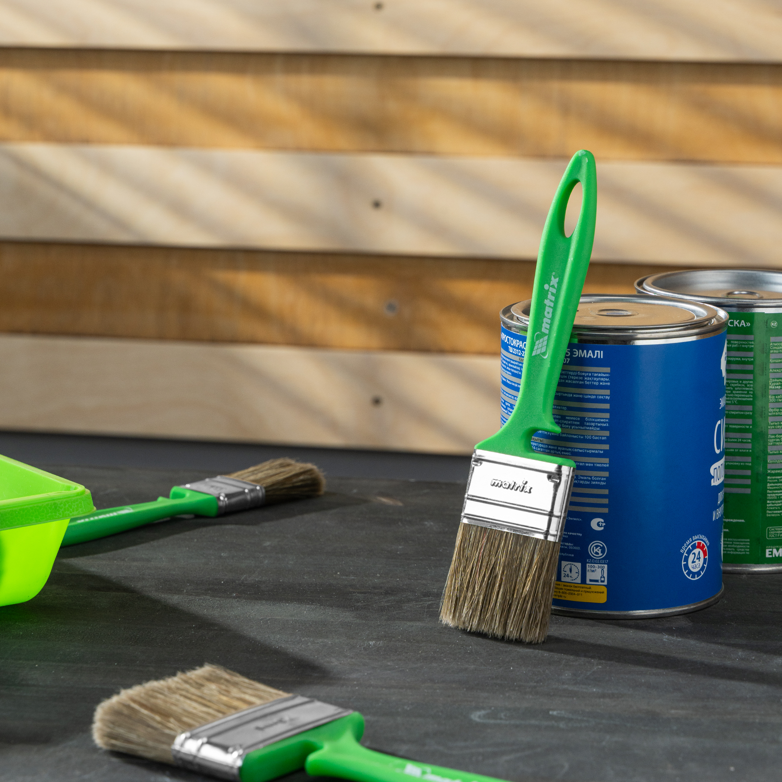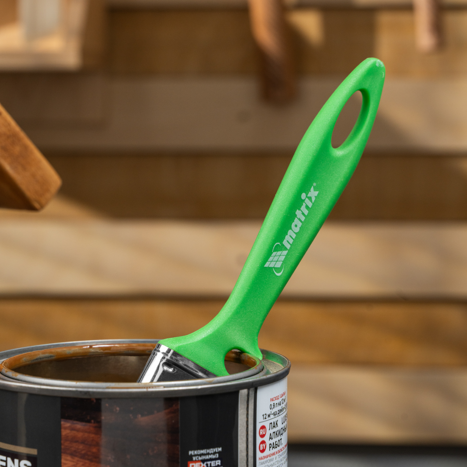 - Продуманная форма рукоятки — благодаря специальному вырезу кисть можно закрепить на банке, ведре или ванночке.