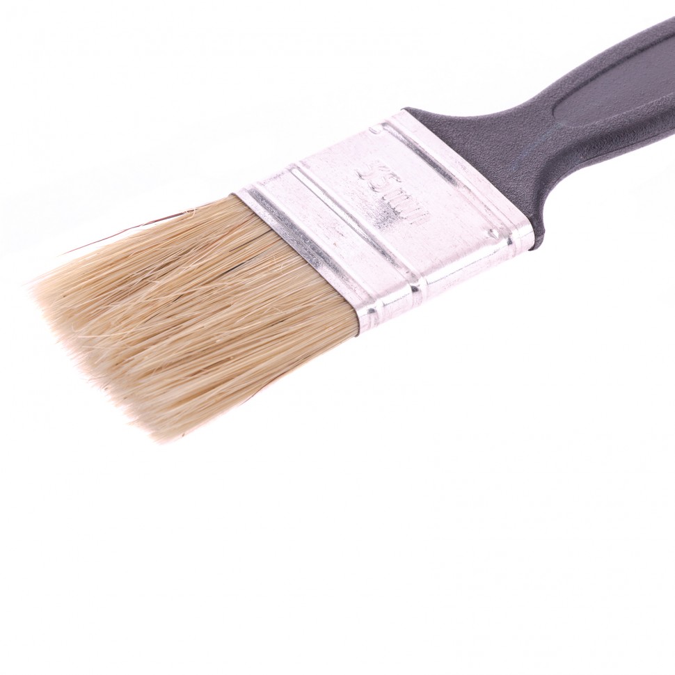 Флейцевая кисть Сибртех «Стандарт» 82503 размером 35 х 6 мм, с натуральной щетиной и пластиковой ручкой, оптимальна для финишной обработки поверхностей и устранения мелких дефектов после использования кистей с более жесткой щетиной. Рабочая часть из свиной щетины с добавлением искусственной устойчива к истиранию и воздействию растворителей.
