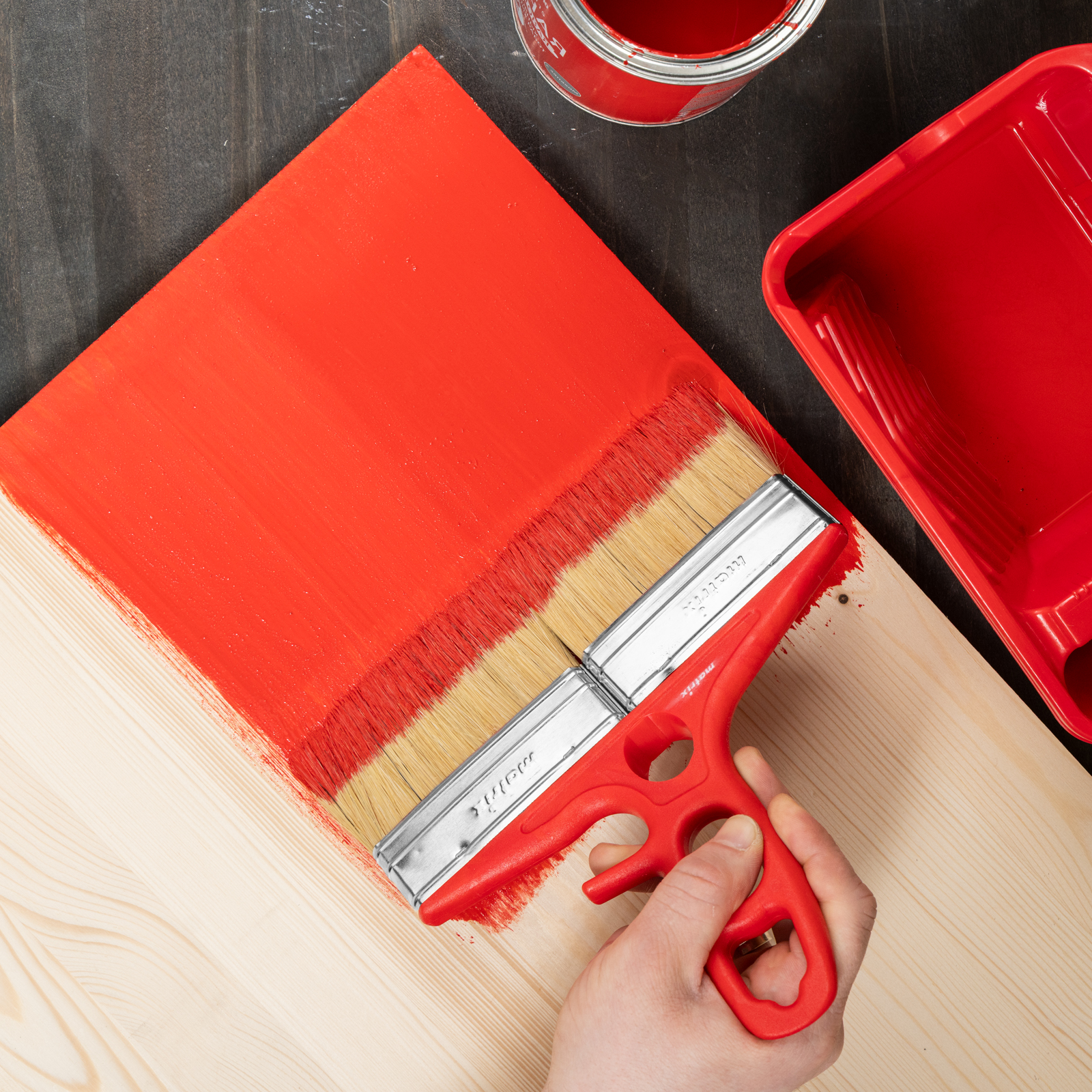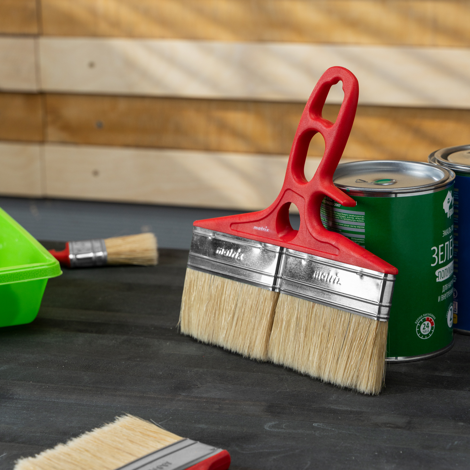 - Продуманная форма рукоятки — благодаря специальной выемке кисть можно закрепить на банке, ведре или ванночке.