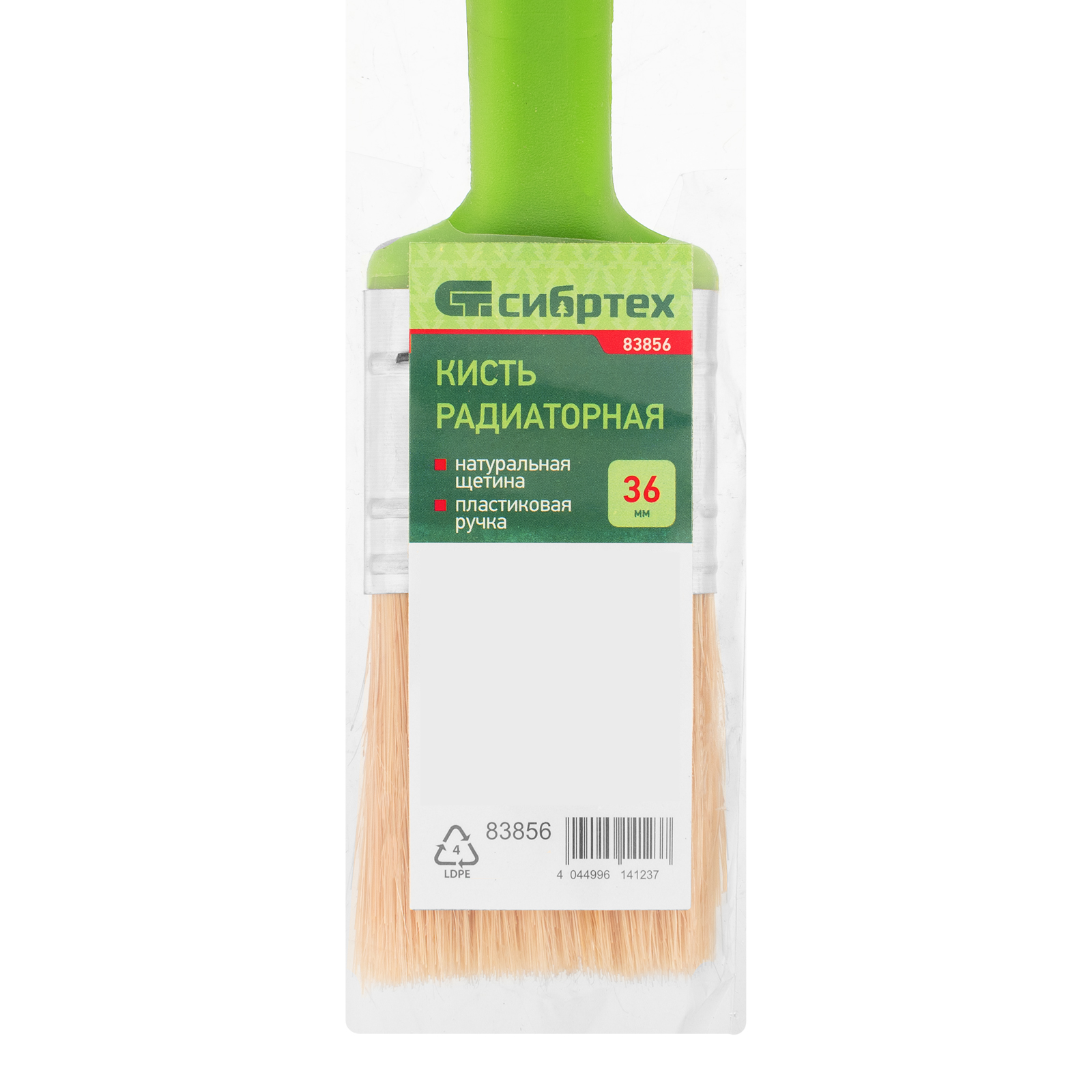Кисть радиаторная 36 мм, натуральная щетина, пластиковая ручка Сибртех