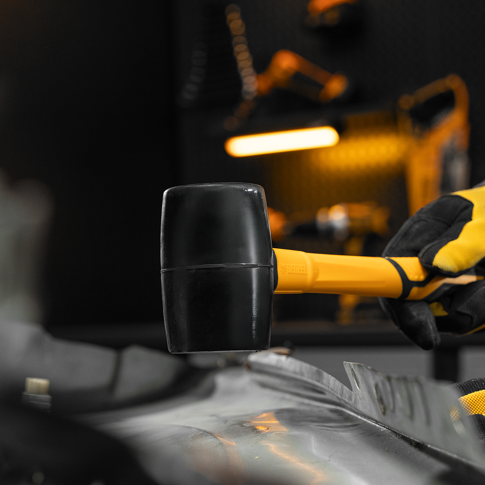 Киянка резиновая, 450 г, черная, фибергласовая рукоятка c TPR покрытием Denzel