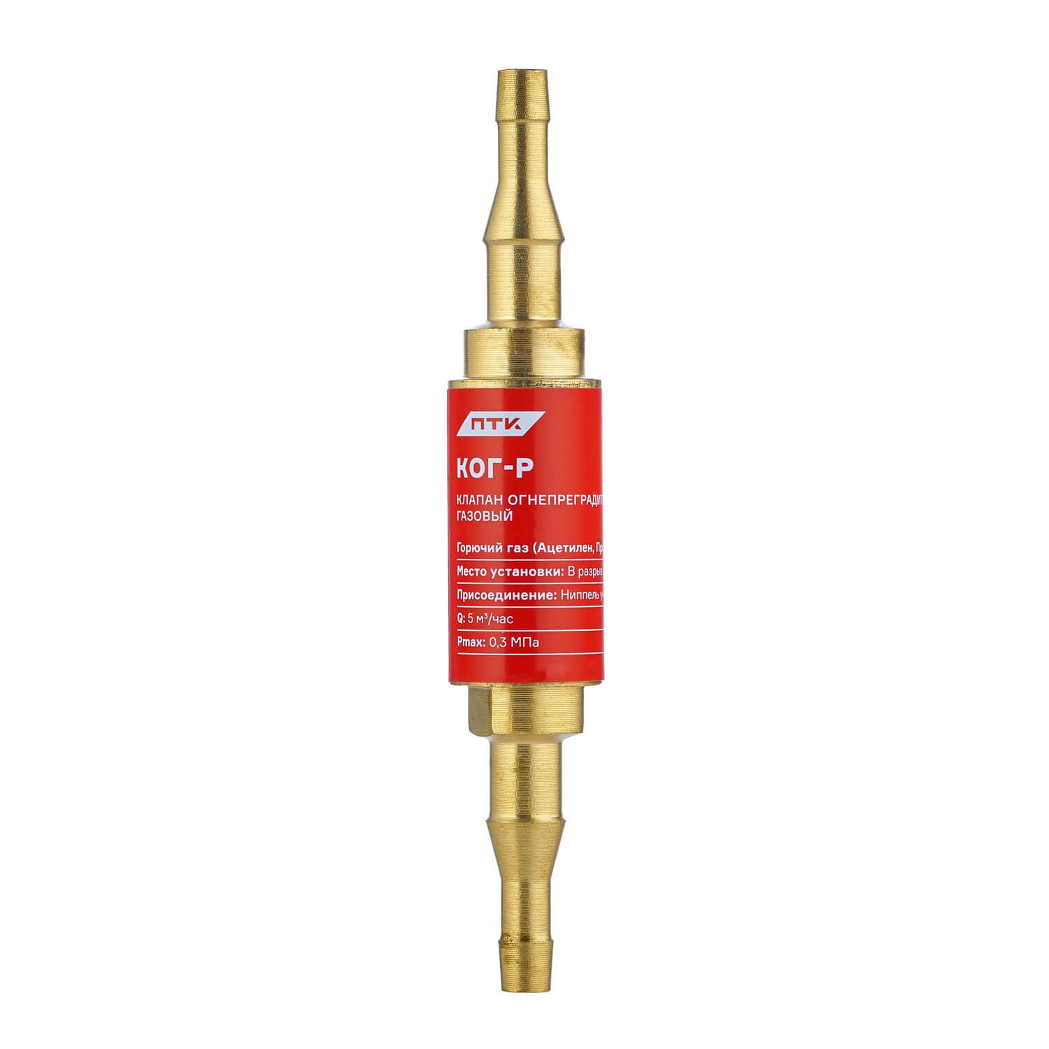 Клапан огнепреградительный газовый КОГ-Р (в разрыв рукава) предназначен для защиты от противотока газа, а также для защиты от разрыва газового резинотканевого рукава и его возгорания при обратном ударе пламени.